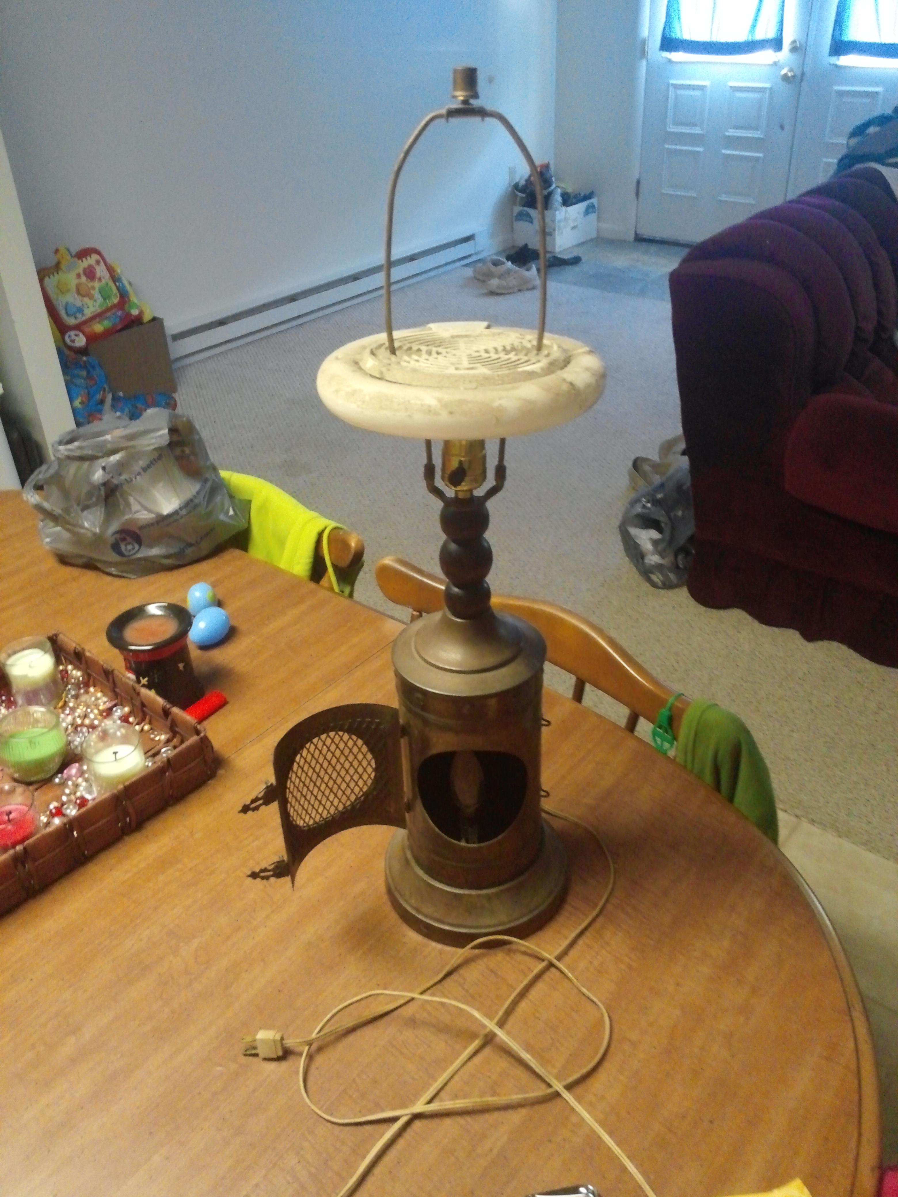 Got this lamp from an older man about 8 years ago. Have searched for hours for anything like it with no luck. Still works....both top and bottom light up . Has 3 different light options.. just top...just bottom...or both. Hope someone can help. It has no markings of any kind that i can see.