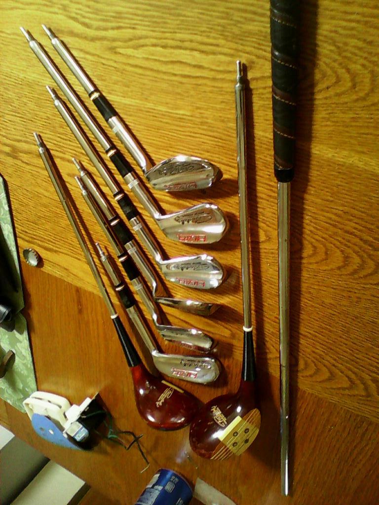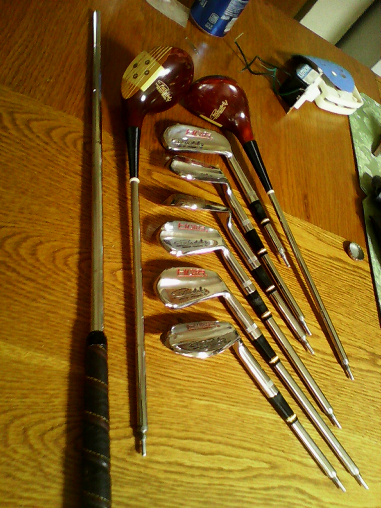 After hours and hours of phone calls and web search,have found out just little on facts or price. The first was on eBay,through PGA. The golf set was taken off the bidding because something with the price put on them the owner didn't agree with. Then found them on "clubsofdestinction.com" listed as, Porto-Clubs ucset3162, the set wasn't complete and when I went back to it the next day to copy it,it wasn't available anymore. They are Porto-Clubs, they come with a red leather like golf pack to carry them,the original pack of golf tees, and a pamphlet from the place they were sold out of. I've been told by many people that not very many were made, the clubs are, patent pending, I believe made by MR&Sinc. In early 1900's. They are in very good shape.looking for any facts on them or leads on a good place to sell to get the most out of it. Thank you all for reading and taking the time to think about it for me.