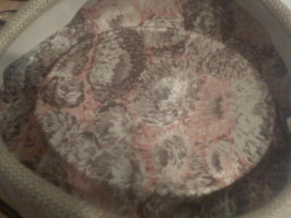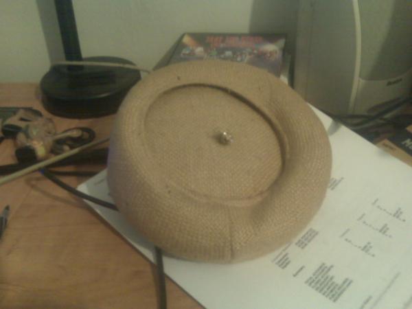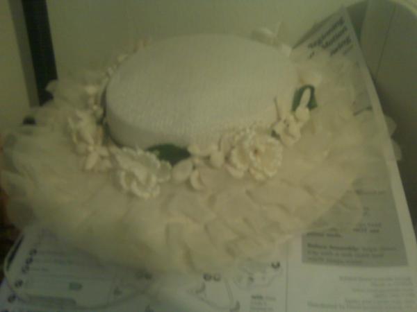 White Hats with Flowers and Brown Hat with piece of jewelry on top.