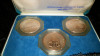 oil painting of the new york skyline, with the UN Building. lights up with little yellow light bulbs.
