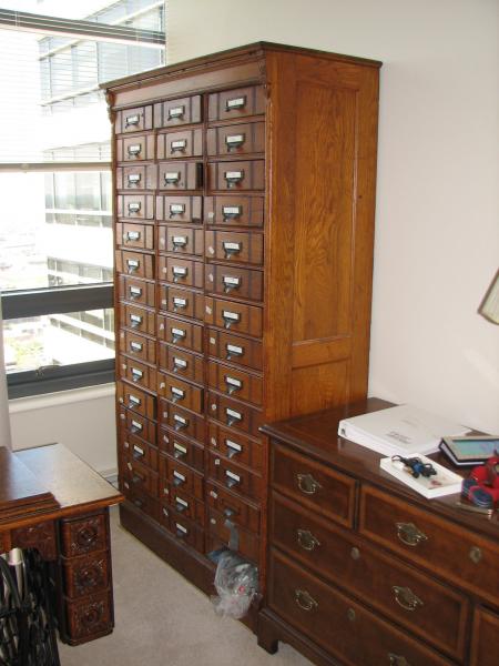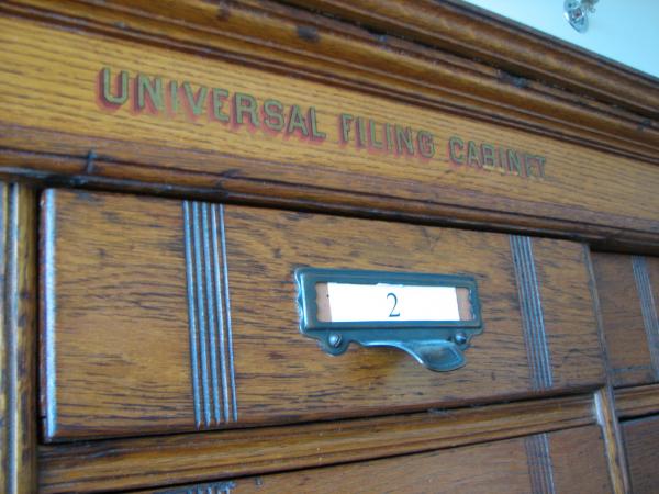 Oak "Universal Filing Cabinet" made by the "Office Specialty Mfg. Co." Excellent condition. Has spare metal assemblies to hold papers in drawers.