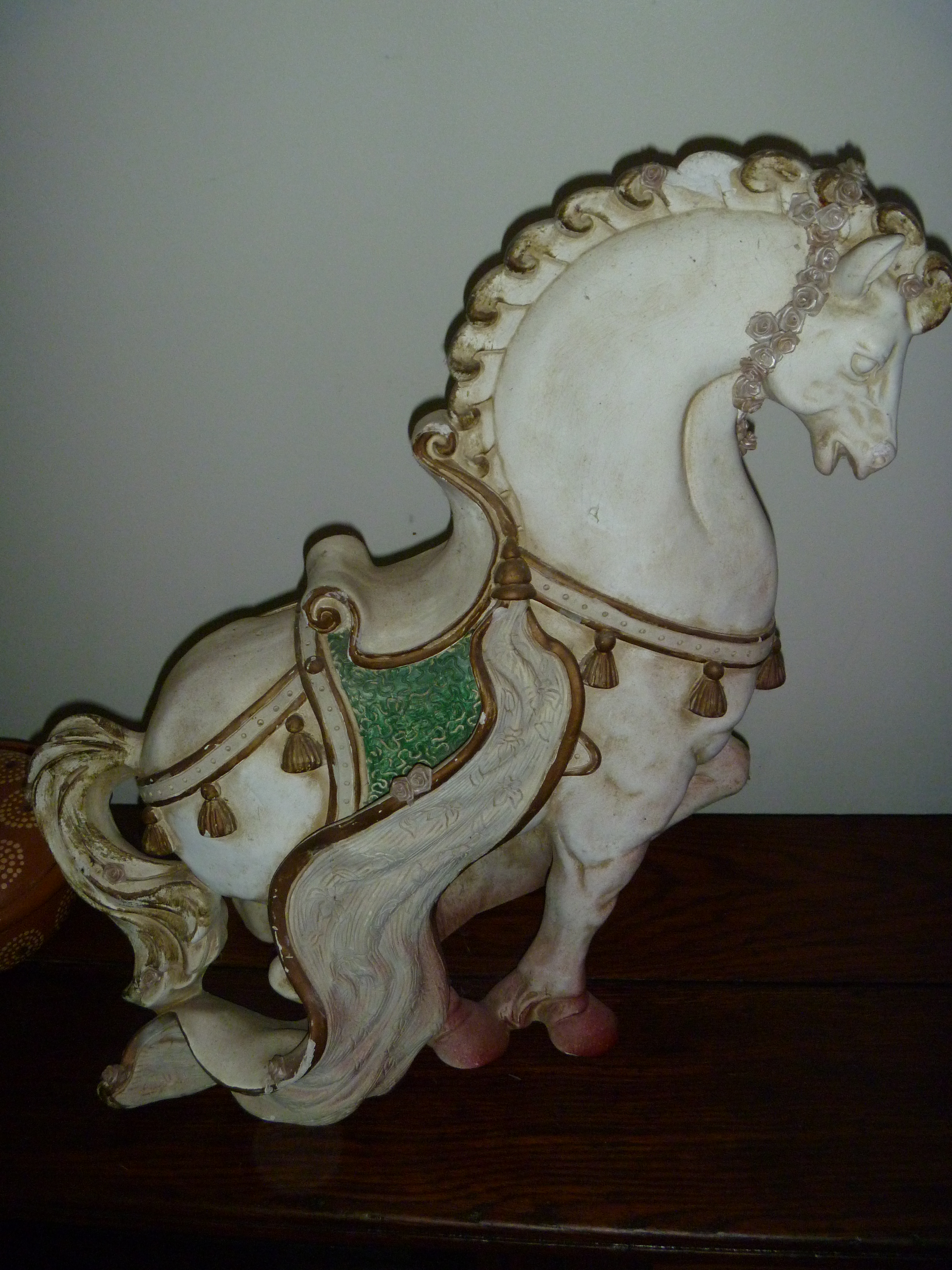 It's a little dirty but in pretty good shape. There are a couple of small chips and someone got red paint on it's feet at some point.