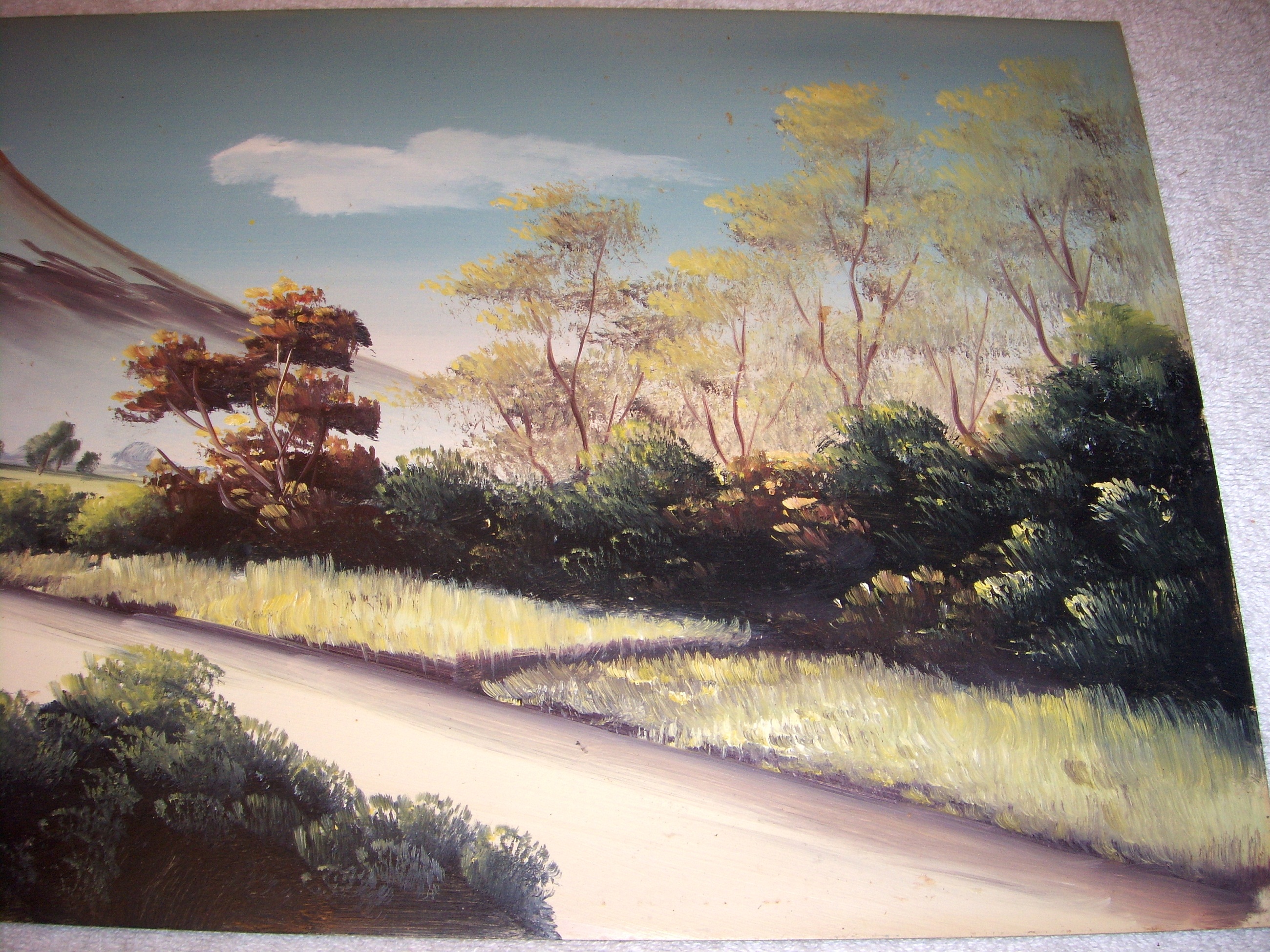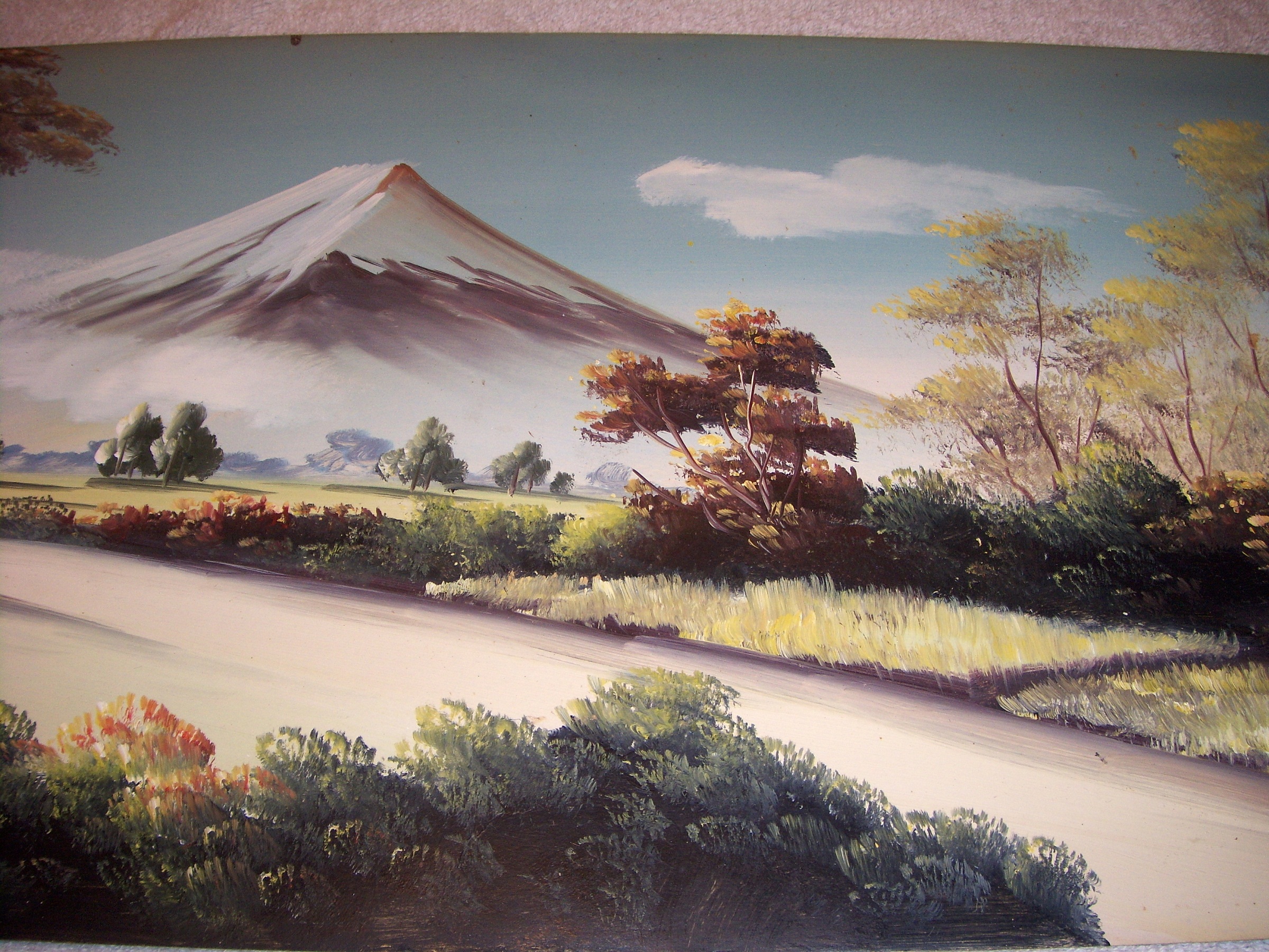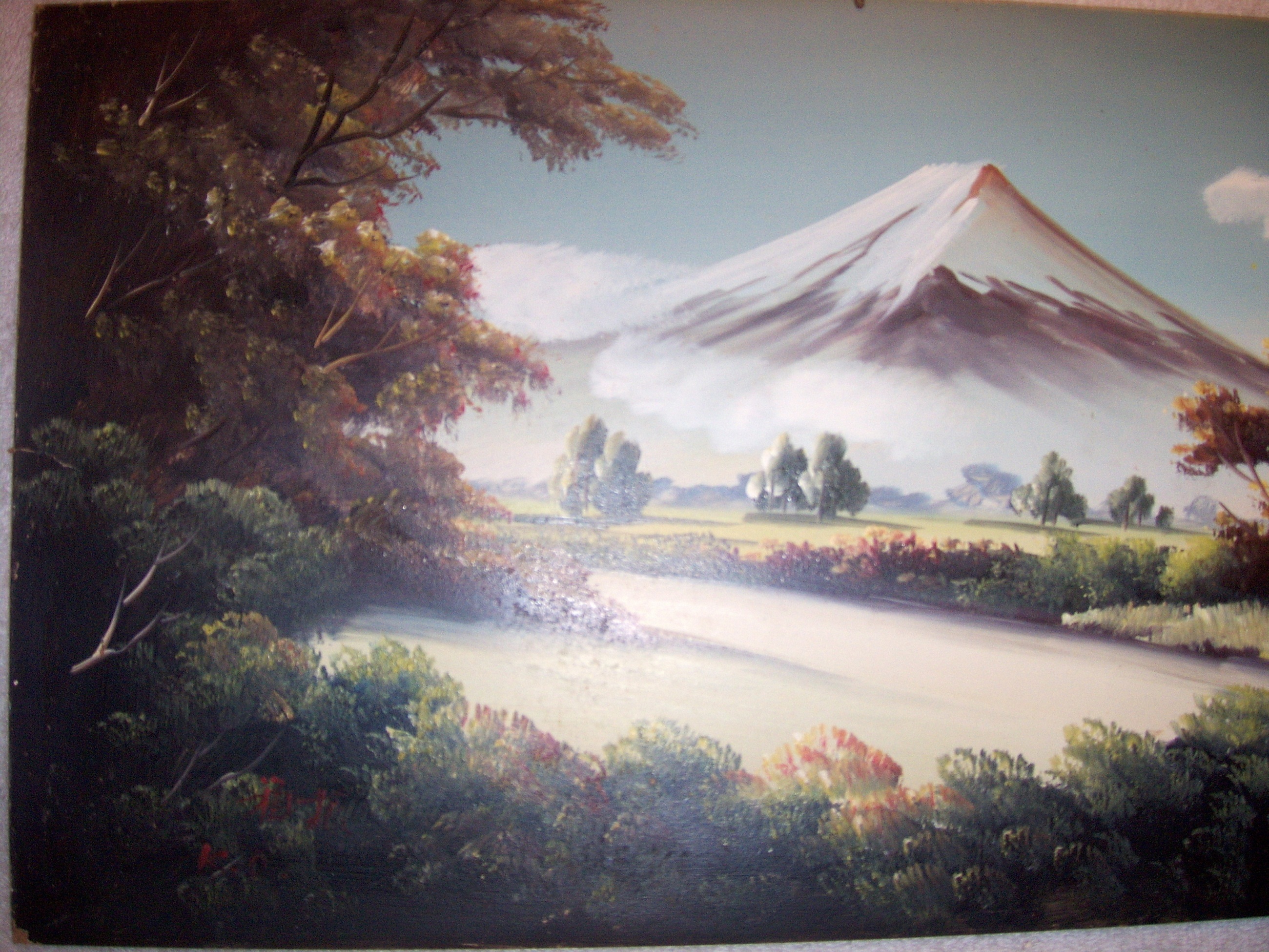 I was told by my grandparents that this oil on board painting. Is by a Mr. Kenzo Okada done while he attended the Tokyo School of Fine arts in Japan. In the late 1920's where he did his works on landscapes. It has his initails painted in red on lower left ( K.O. just under his Japanese Name Writting Symbols ). It is 10 1/2 inches x 24 inches in size. It is in very good condition except for age showing on board back and a slight board crack( NOT ALL THE WAY THROUGH FROM BACK ). My grandfather brought this painting back after being stationed in Okinawa, Japan after WWII. I inheritited it about 15 years ago and have been wanting to sell it. But I need to find out what it is worth.