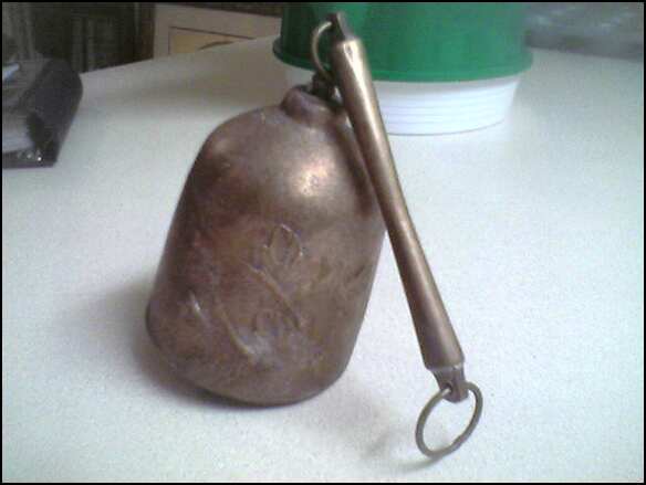 I really don't know anything about this bell. It is somewhat heavy. I bought it at auction for .50 cents. Any help identifying its origin, worth, etc. would be greatly appreciated. thanks!