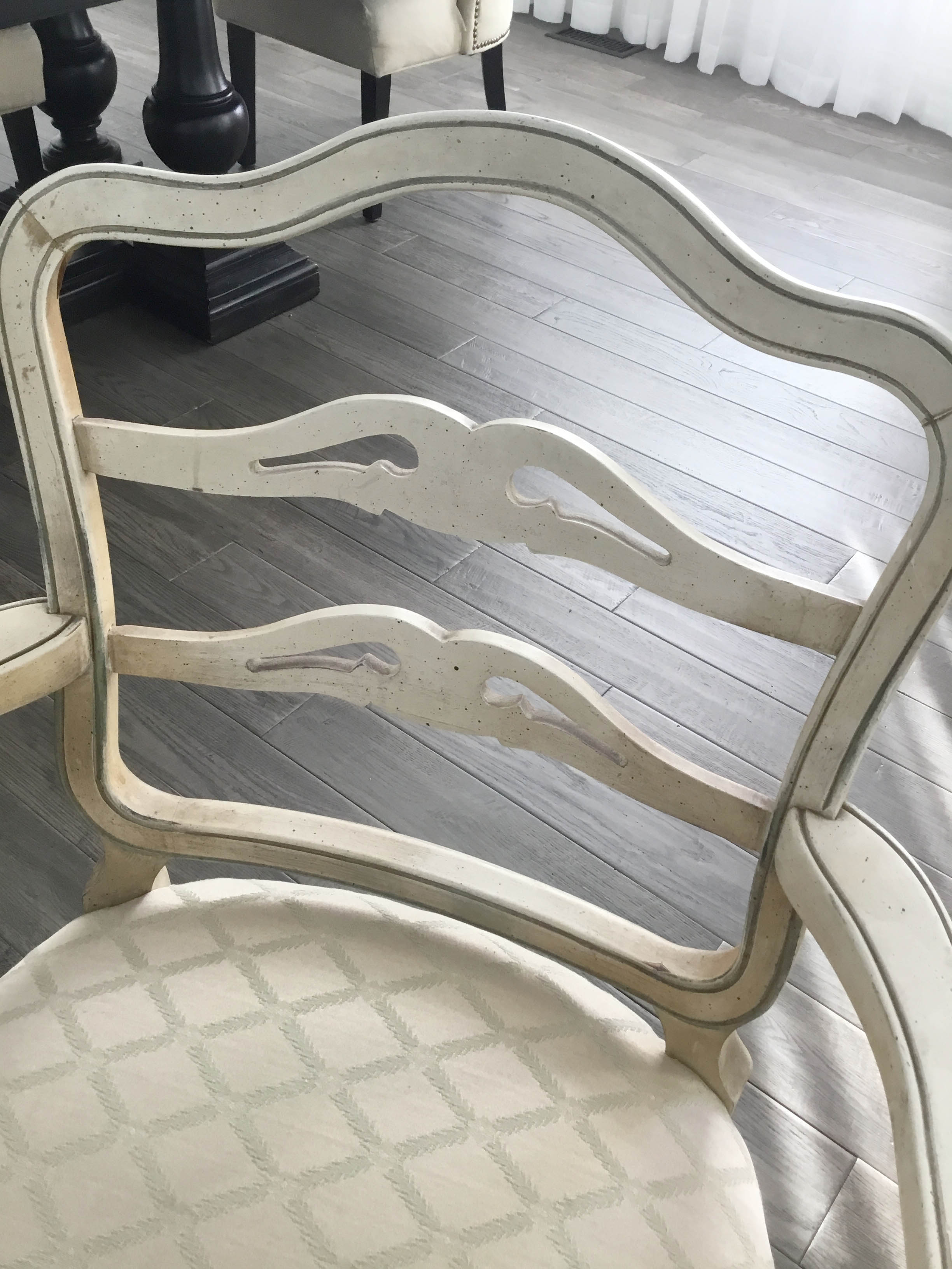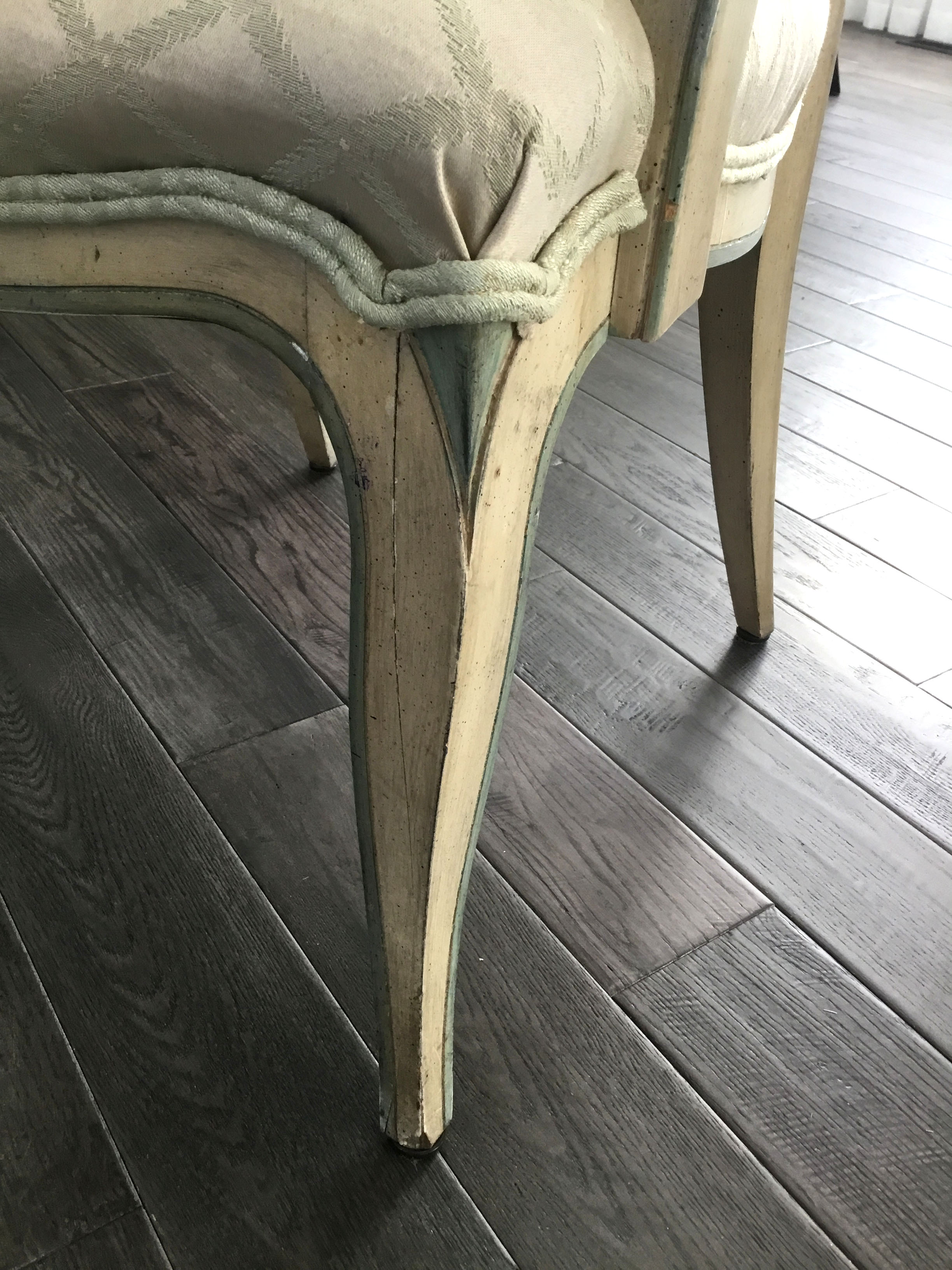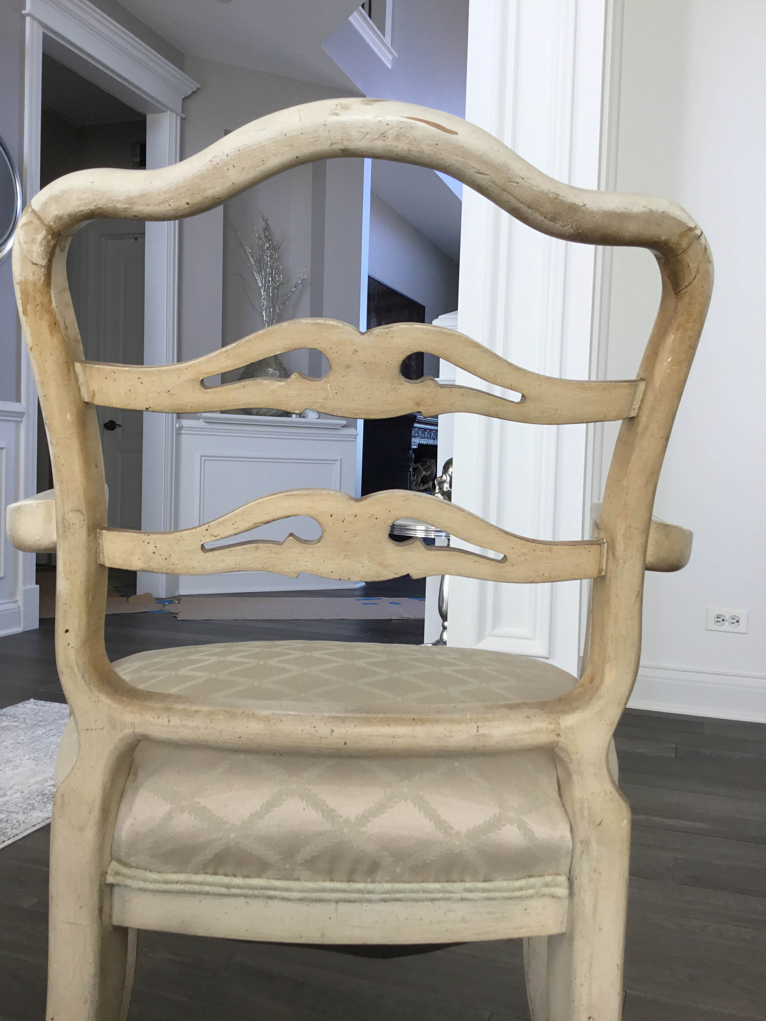 Hello, I would like to know what style would this chair be considered. I have'nt yet found any markings on the chair. The acctual chair seems to be made out of a solid wood. I do see glue next to the nail heads, but I wonder if someone was gluing the piping around the chair possibly when it was reupholstered. Any information would be great!