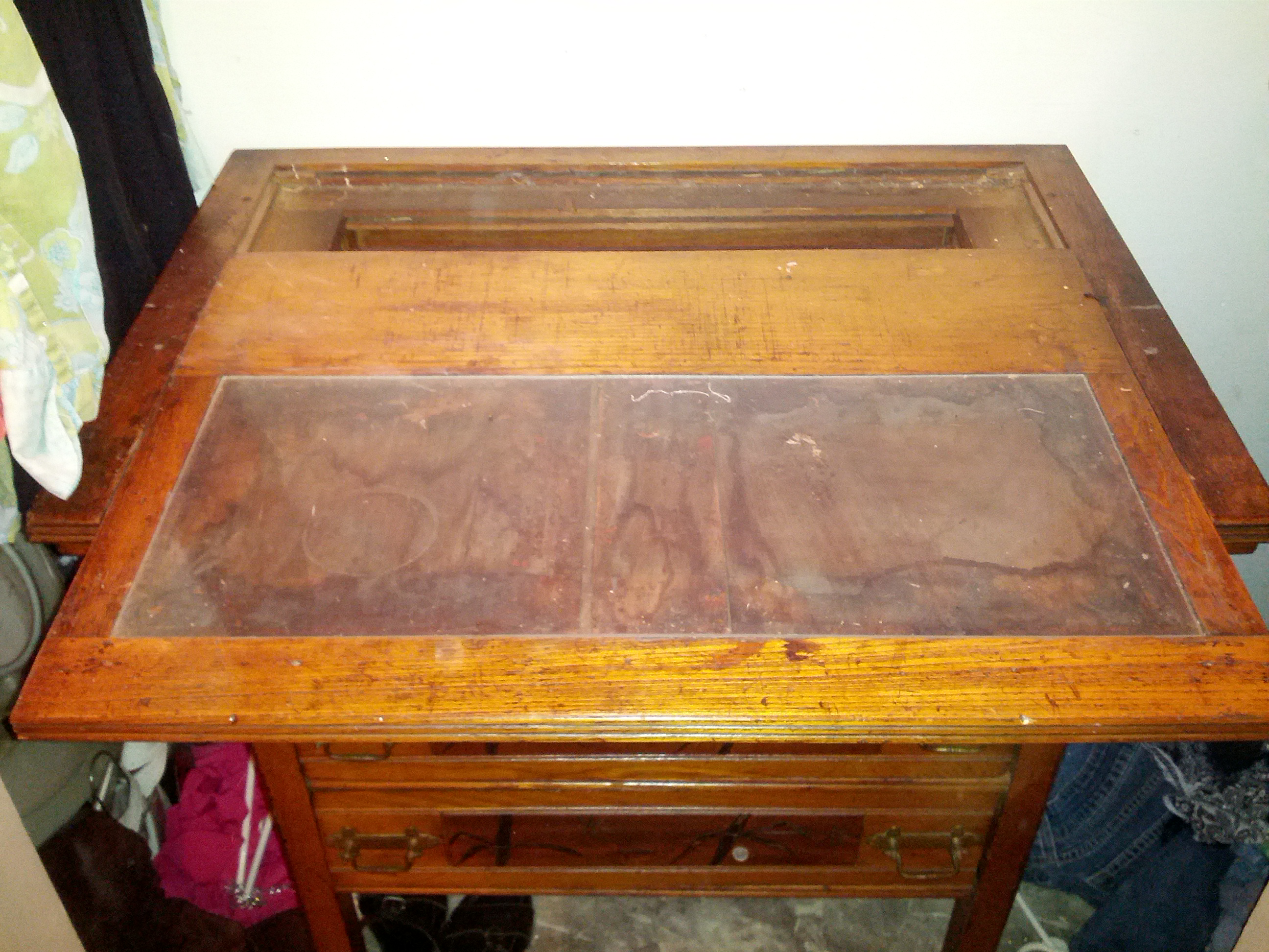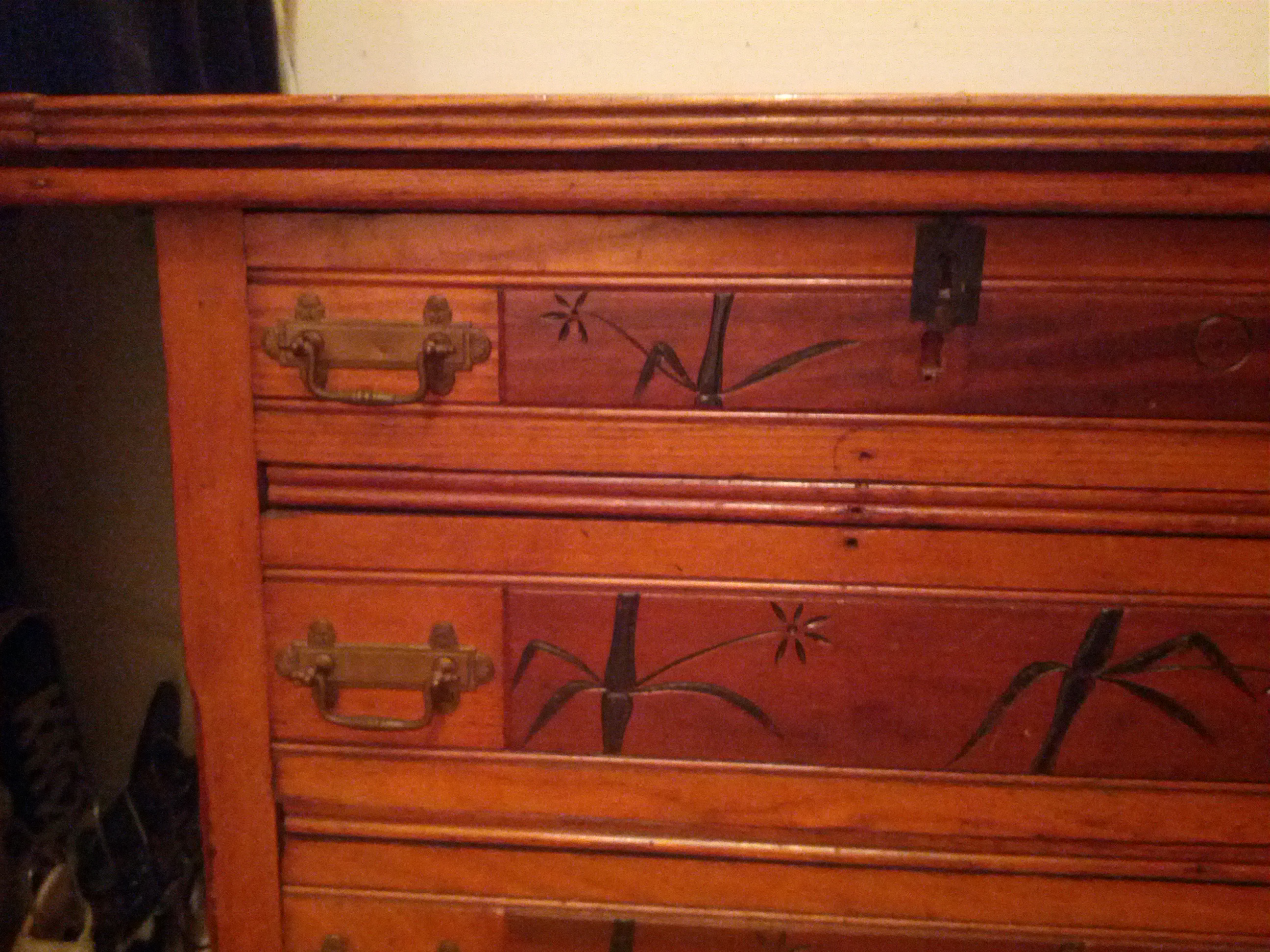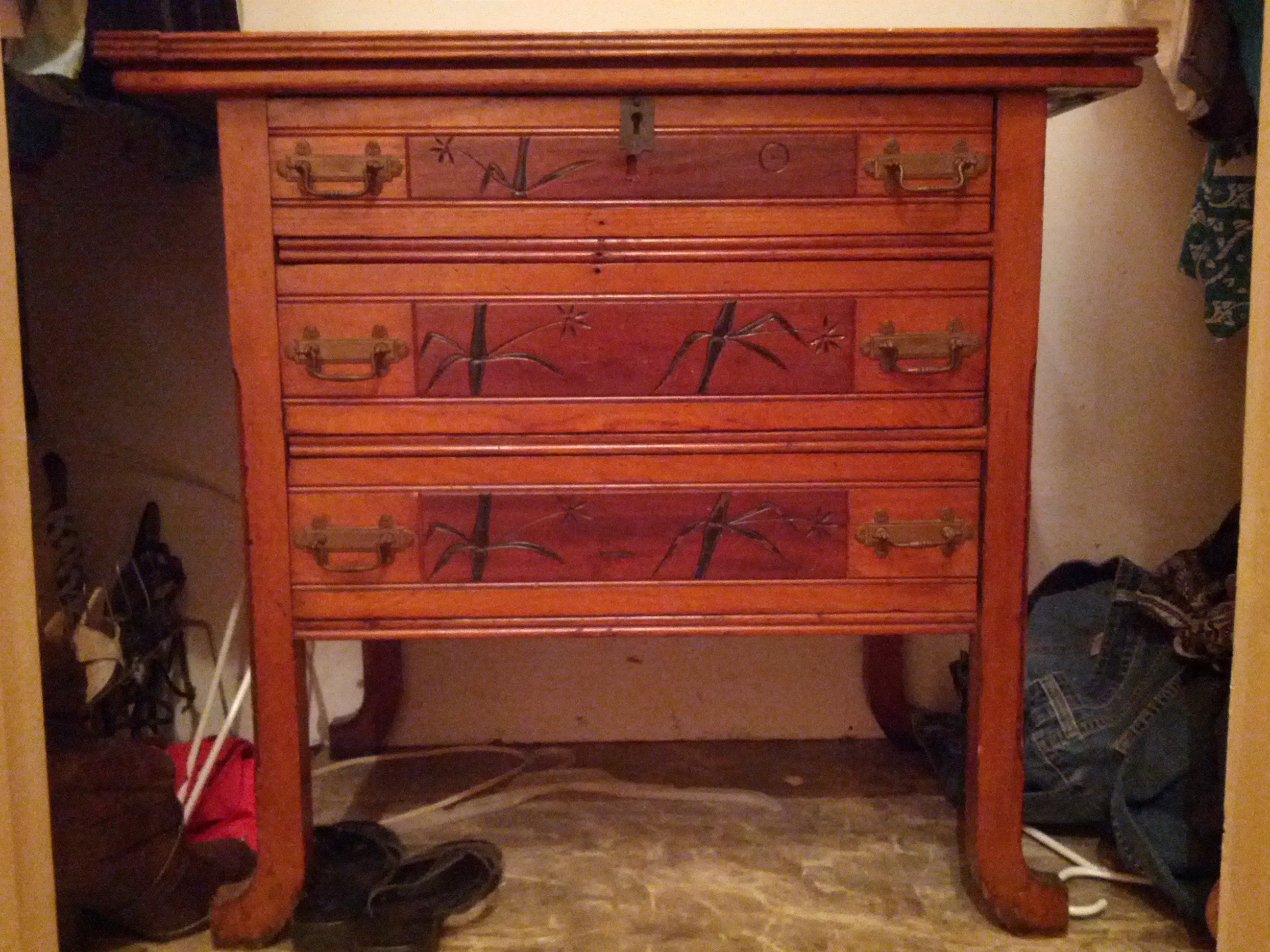 Are there any markings underneath the chest or under/on the back of any of the shelves?