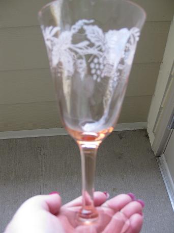 2 pieces have small chips i was told it was fostoria but i can't find. i don't know what it is possibly a wine glass,