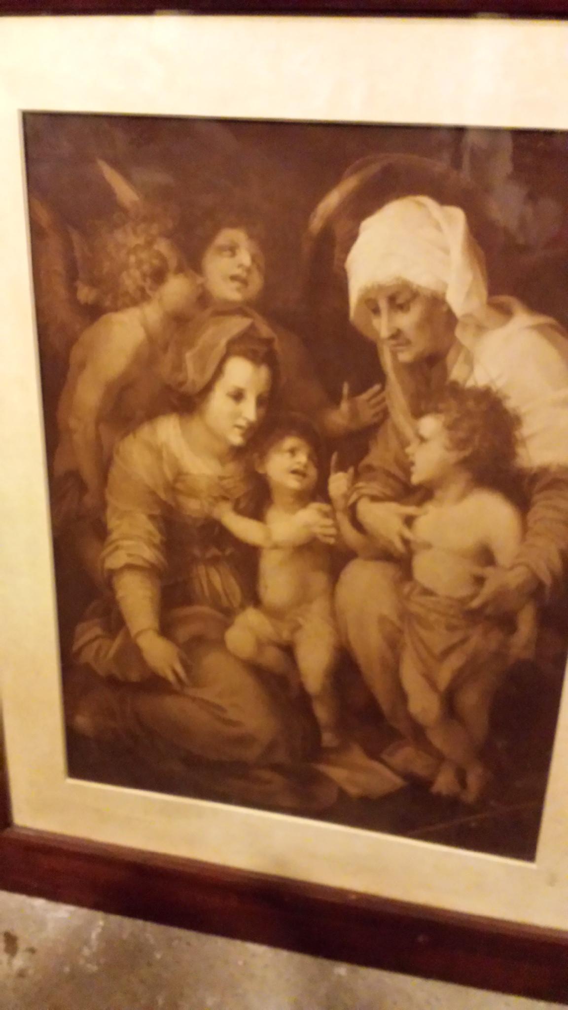 Purchased from someone who stated they purchased from an estate auction. Looks to be in original frame with wood backing and heavy duty obviously aged wire to hang.