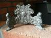 Was in some old things from my grandmother's. Their were several of these flowers in with it, but do not know if they have anything to do with it. The flowers are a kind of plaster material and a wire stem with a hole in the middle of the top of the flower.