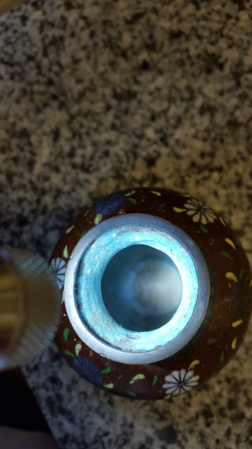 Unknown Origin Metal Vase with inlays. I believe it's bronze with some type of inlay.