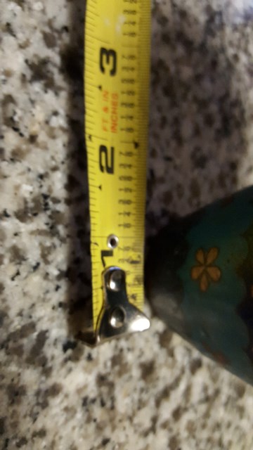 6" tall x 1" base x 3" widest portion x 2" top