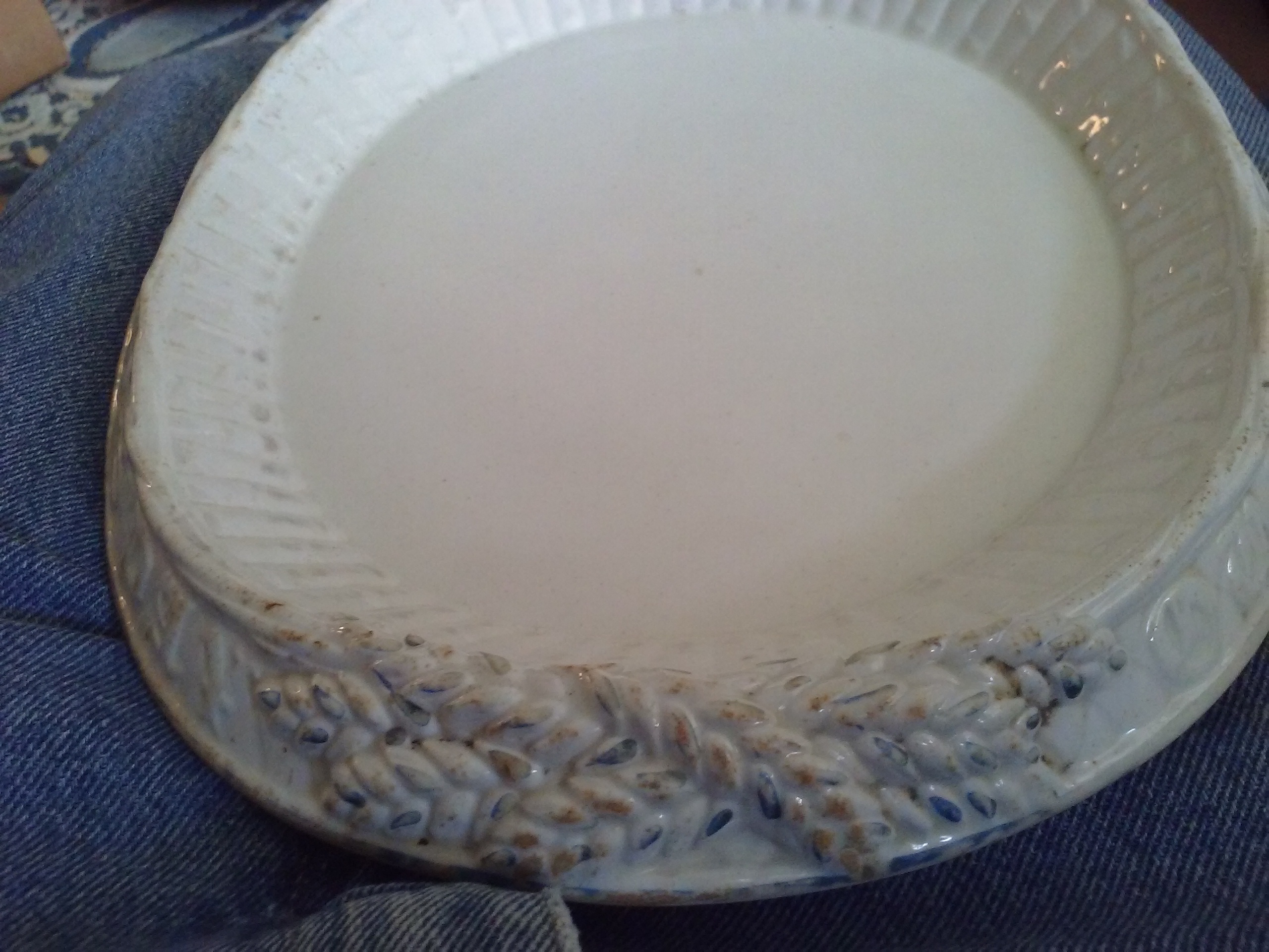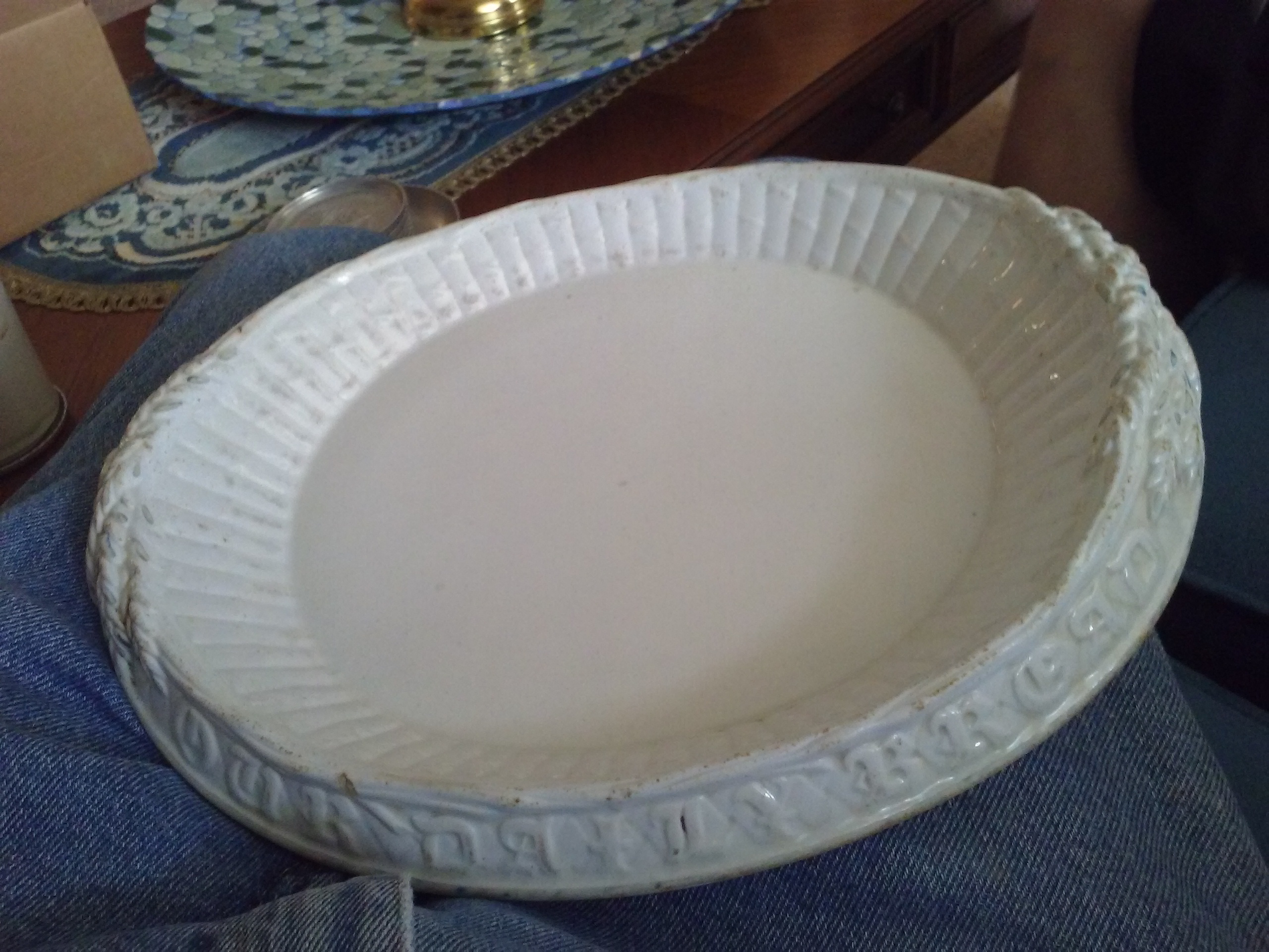 Unusual white oval bread platter with lettering referencing daily bread. I believe it came to the US via England and was a family piece. Has wheat on end and nothing on the platter itself. Marked with numbers "9" and"84" some type of "K" variant. Any information appreciated. See pictures.