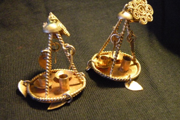Middle eastern earrings? passed down from family member, brass? coffee service, tradition?