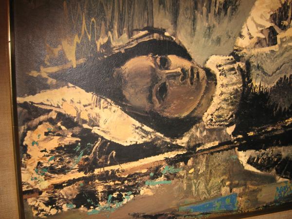 THIS IS AN AWESOME PICTURE ,BUT I AM AFRAID I AM NOT FAMILIAR ENOUGH ABOUT THE SUBJECT.JUST THAT IT IS A 20 X 40,WITHOUT THE FRAME, SIGNED BY OLA.I PURCHASED IT AT A THRIFT STORE, BECAUSE IT JUST WAS SO UNUSUAL!!!