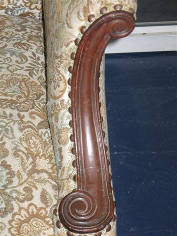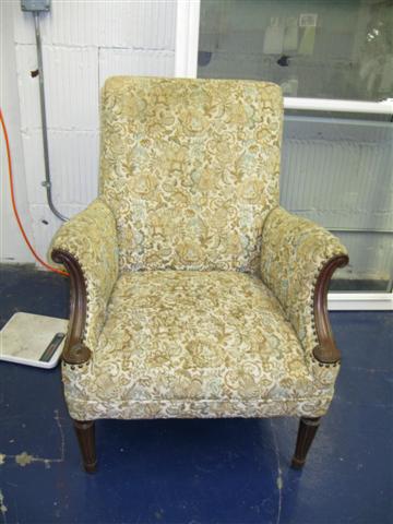 This chair is very solid and heavy. It has been reupholstered twice.