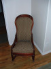 wooden and upholstered rocking chair with matching ottoman from the late 19th century. i have tried to find matching chairs to this but have not had any luck. the chair has been reupholstered many years ago. chair has claw feet.