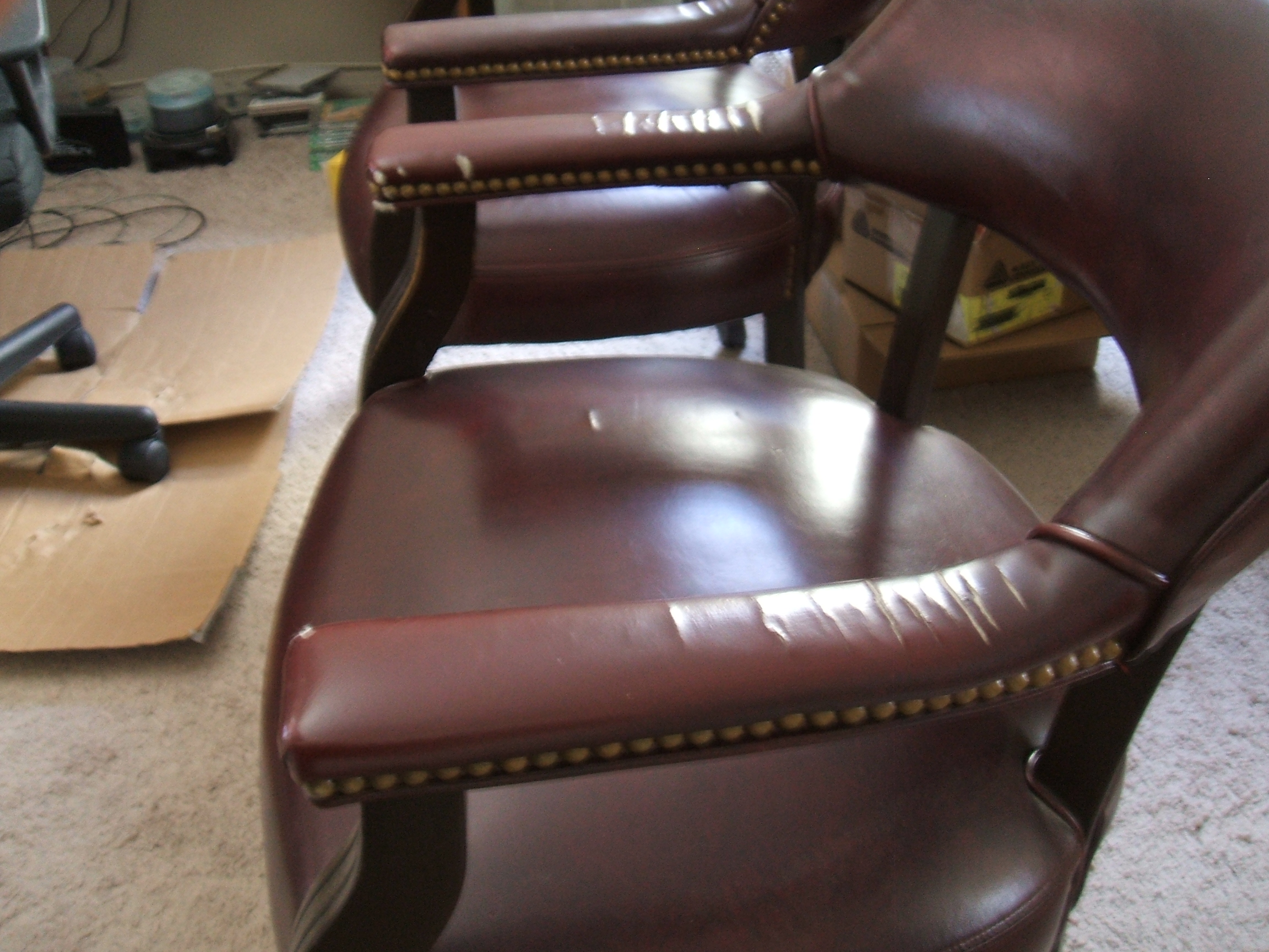 I have a pair of chairs from the U.S. District Court, District of Nevada. They each have a metal plate on the leg that state the above. They were made by Jansko in CA. I was told they were judges chairs but don't think so. They can't be really old because they have plastic feet on the bottom of the front legs however, it may have been added later. One is somewhat torn up in the leather and wood a banged up. The other is in good overall condition. What do you think they are worth and were they really judges chairs? It's been hard to find out anything about them. Thank you.