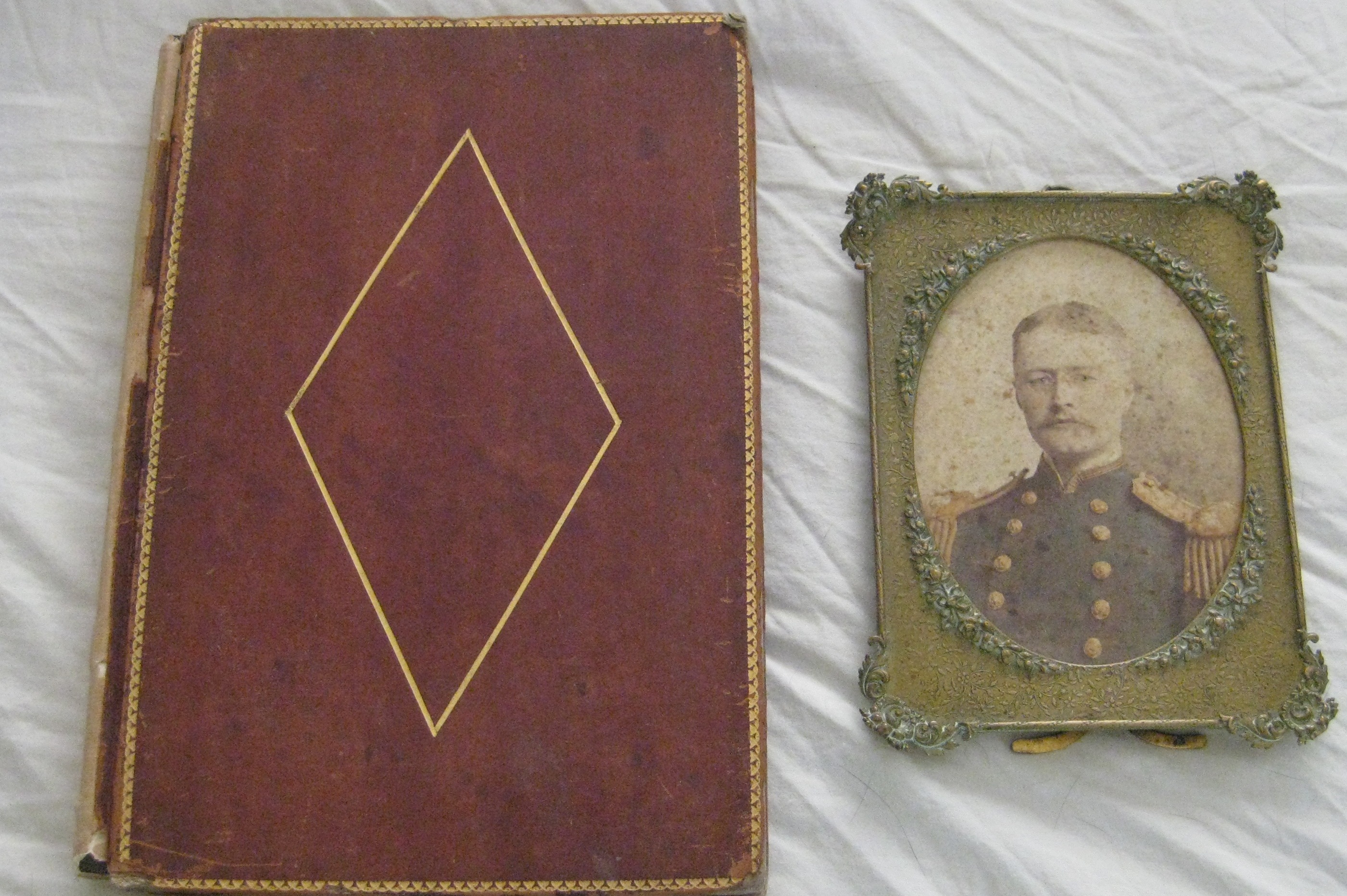 1880's USS Quinnebaug Journal handwritten by naval architect J. J. Woodward. Includes many handwritten drawings and a picture of him in original frame.