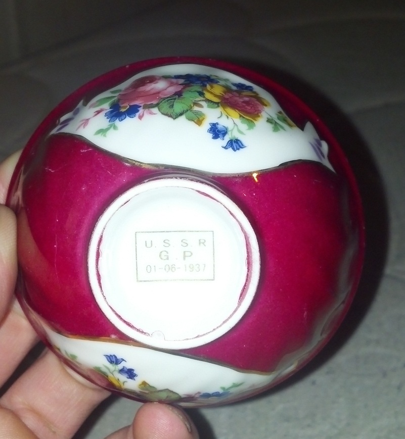 Red bowl hand painted labeled USSR GP 01-06-1937