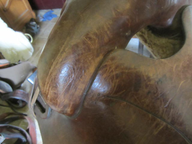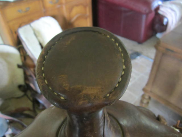 This is a saddle my mom bought for me about 7 years ago at a garage sale for only $200, but I am sure it is worth more than that. It is an old Utahn western saddle, double skirts, no tooling or silver. The serial number is 69. The gullet measures 7 1/2-8 inches and the skirts are 26" at the longest point. It has a 14" slick seat. It came with a rear cinch, which I believe is the original matching one but there's no way for me to be sure. The fleecing is real sheepskin, not that fake felt crap. I'm pretty sure the tree is wood and rawhide, but it's hard to tell. This saddle is HEAVY (I would guess about 30 pounds. I have only seen a few other Utahn saddles on the internet, and they sell for a lot of money ($900+). Mine is very scuffed up, but the stitching is in excellent condition. My endless searches have turned up little to nothing about the Utahn saddle company, except that it was a highly respected company that didn't seem to be in business very long. This saddle is just slightly too narrow for my horse, so I have to part with it and get a different one. I would never sell this if I didn't have to. I love this saddle and have put tons of trail miles in it, roped out of it, and even showed in it. I would like to know how much it is worth before I put it up for sale so I don't get less than it is worth. It would also be neat to know when it was made, if possible. A saddle collector told me not to take less than $500, but I would like a second opinion.