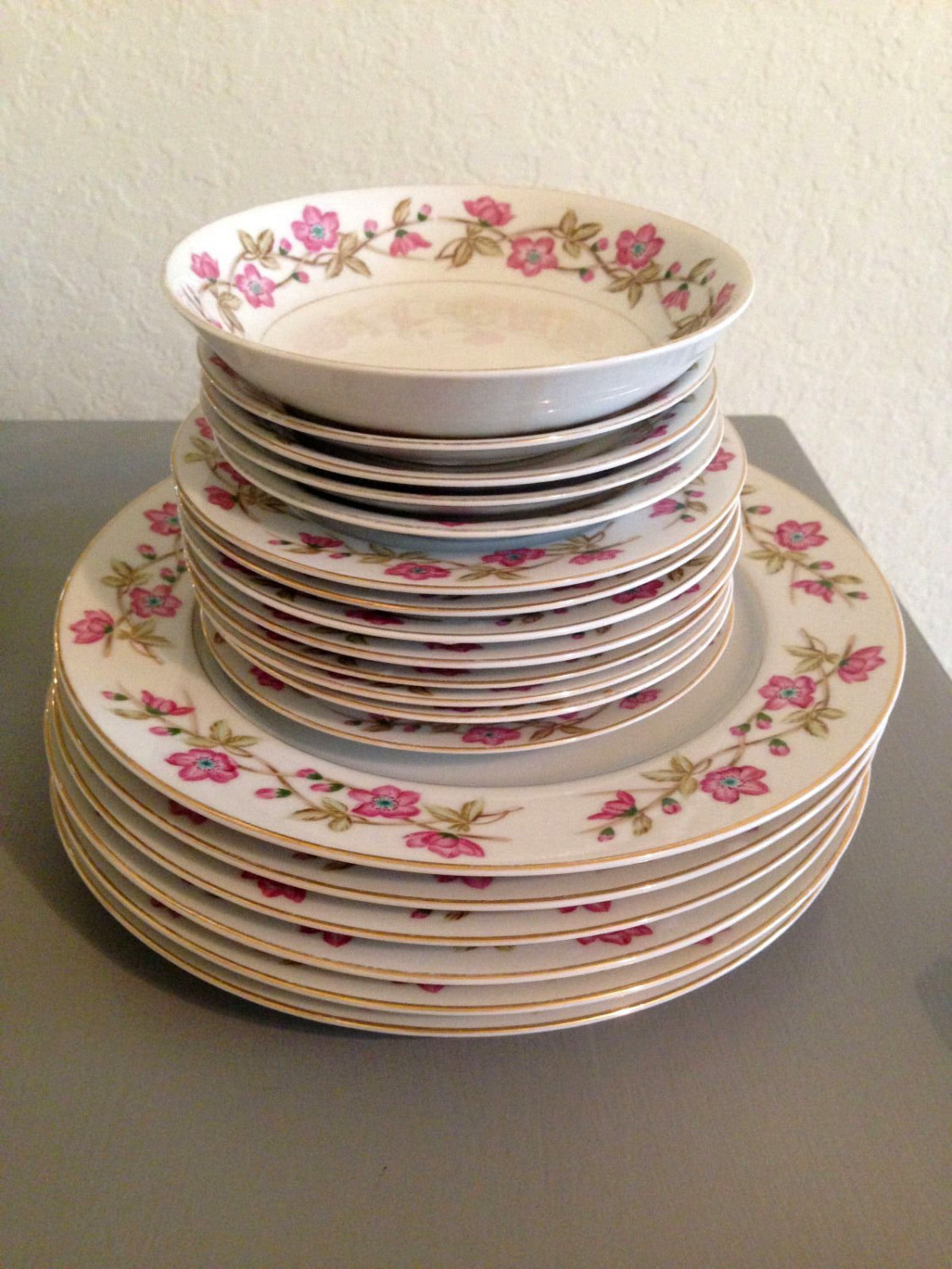 Briar Rose pattern, service for 8, salt &pepper shakers, sugar, creamer, dessert bowls and plates, 1 platter