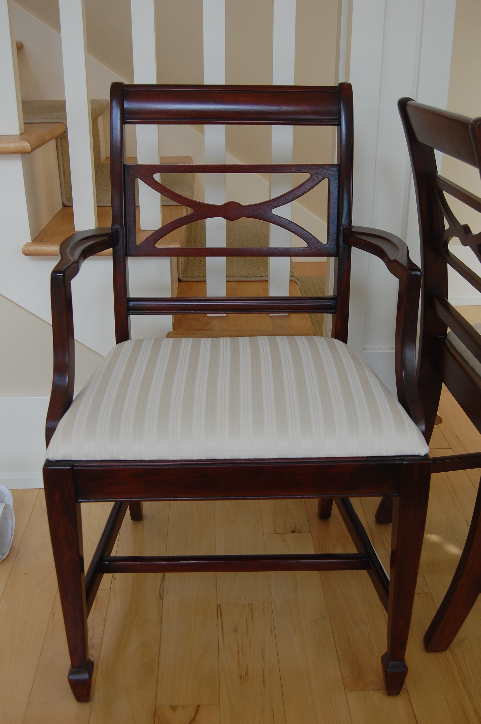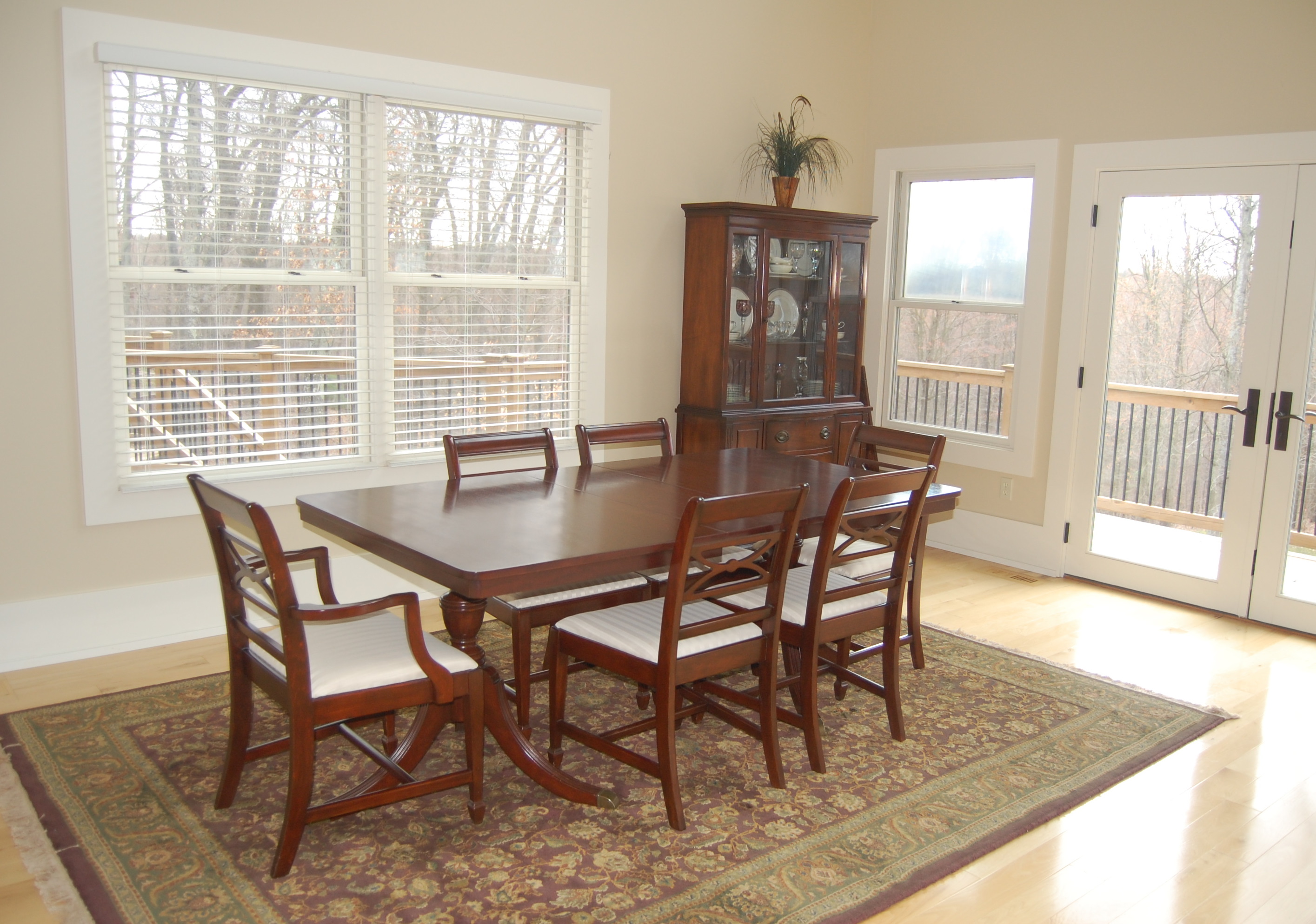 The matching hutch is mahogany with a glass door. Hold fine china