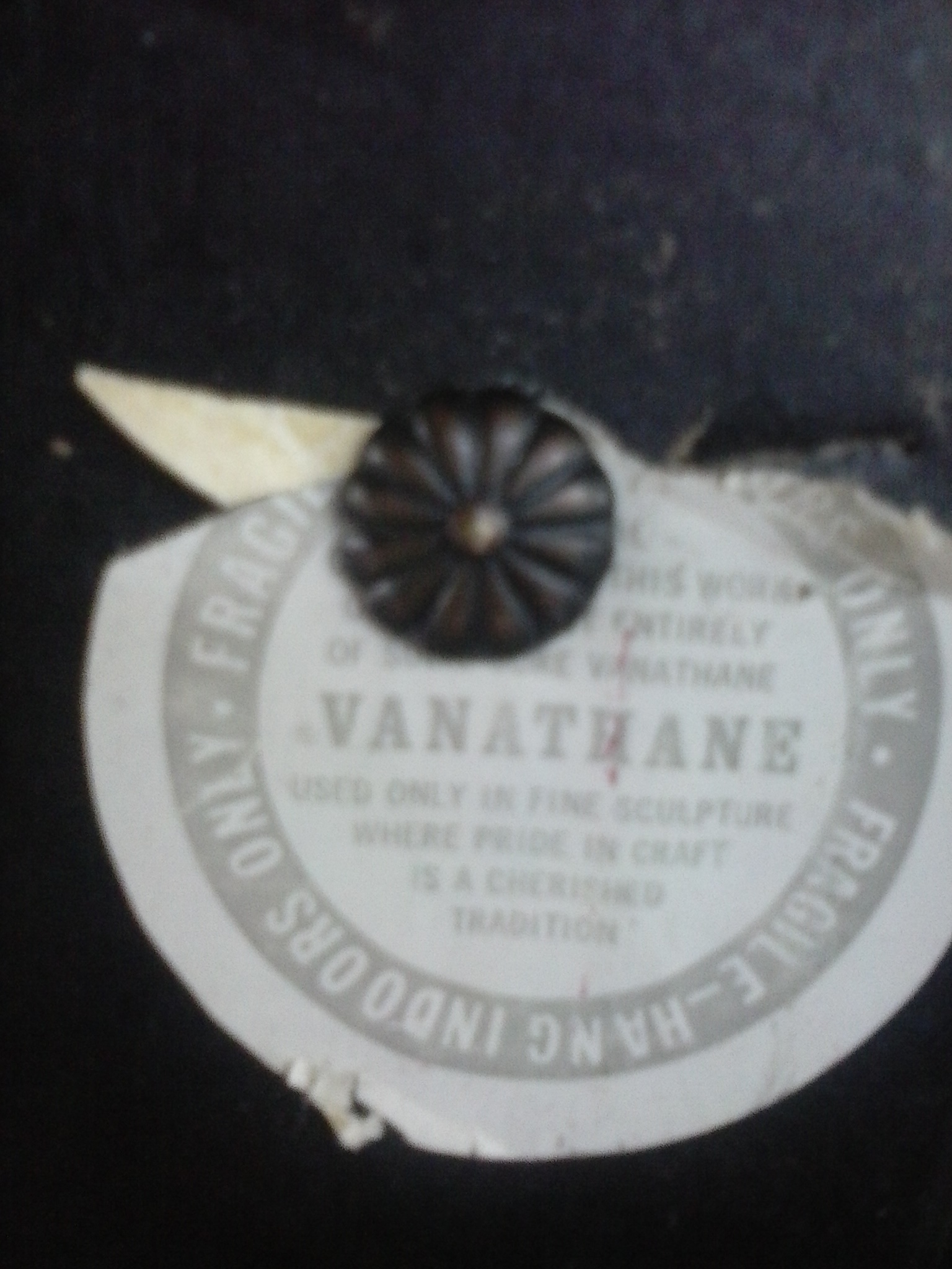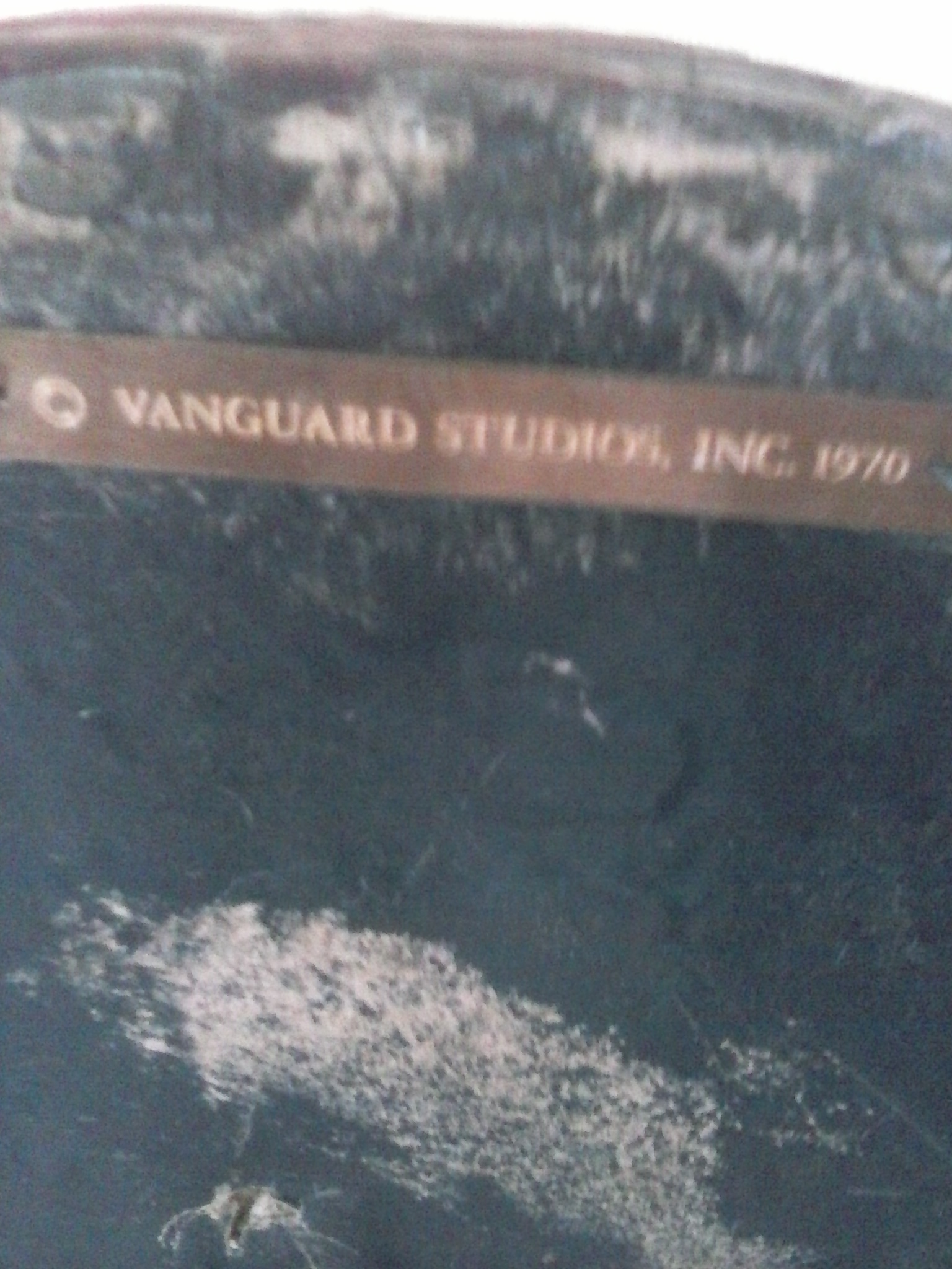 It has a gold plackard on the back marked Vanguard Studios Inc 1970. It is made of pure vanathane and has a certified seal of proof on the back.