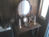early 1900's, mahogany veneer, queen annes legs, tri mirror silver backing