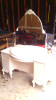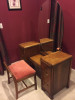 This chair is all wood and the round seat swivels up and down when turned. It has glass balled feet with brass(?) holdings. It is very pretty. I inherited it and have seen it in the family used as a piano stool and a vanity chair.