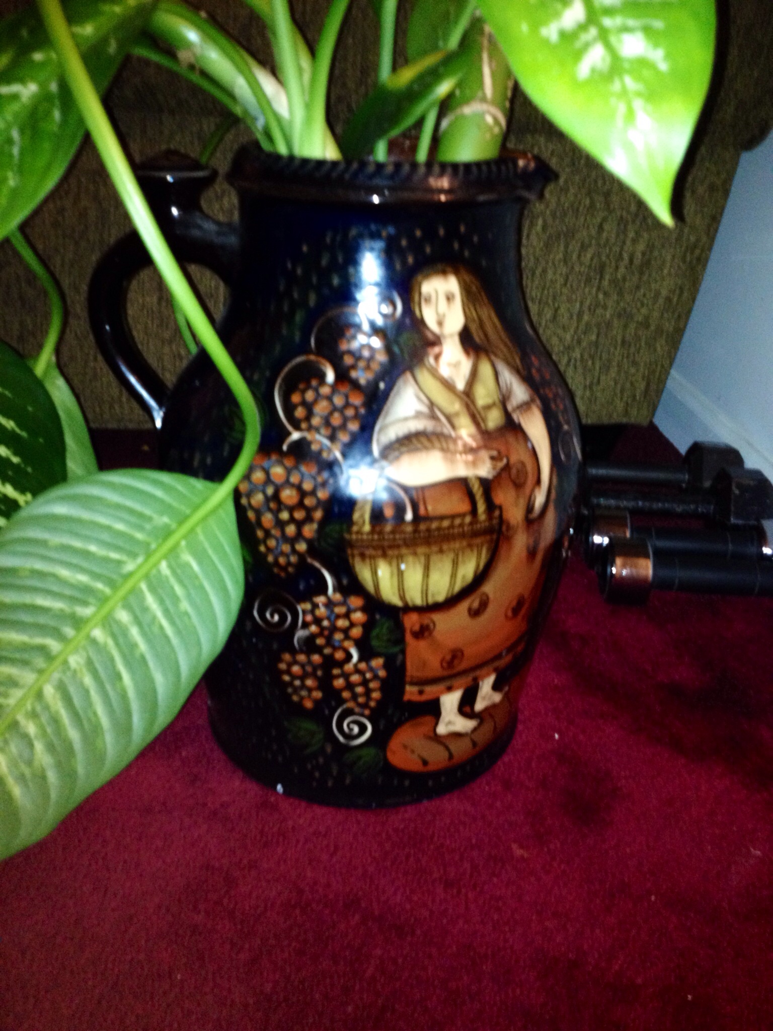 Large vase with a man and women on it all of the vases markings are now in the pics the bottom of the vase contains the to flat marks in the pics. The vase stands about 2ft approximately weighs about 50 lbs.
