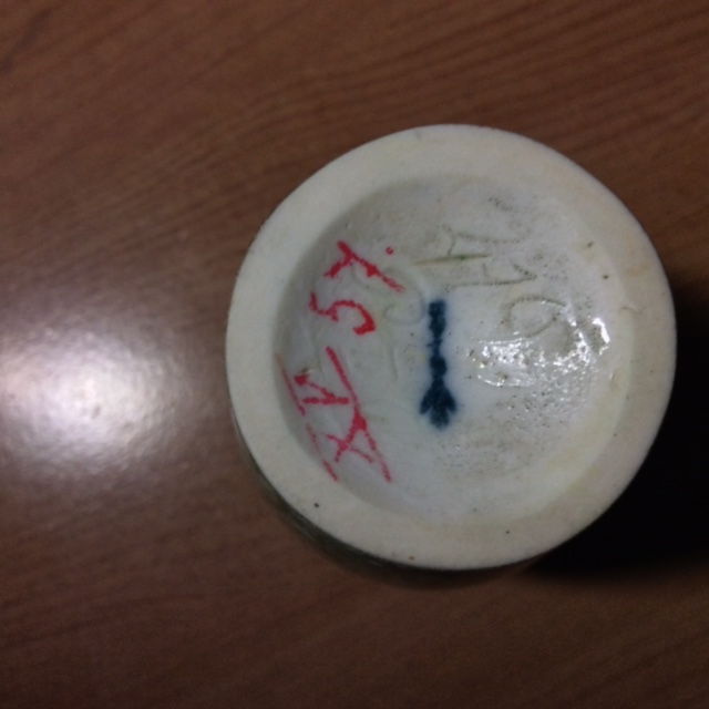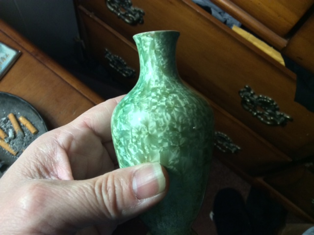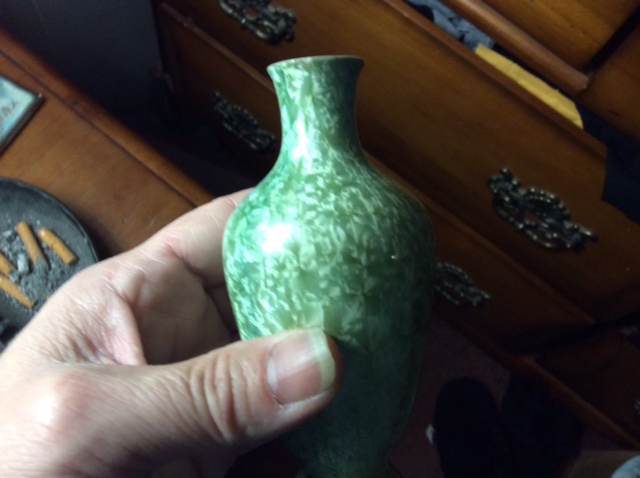 Of baluster form, painted in green in hard stones, painted sceptre mark.