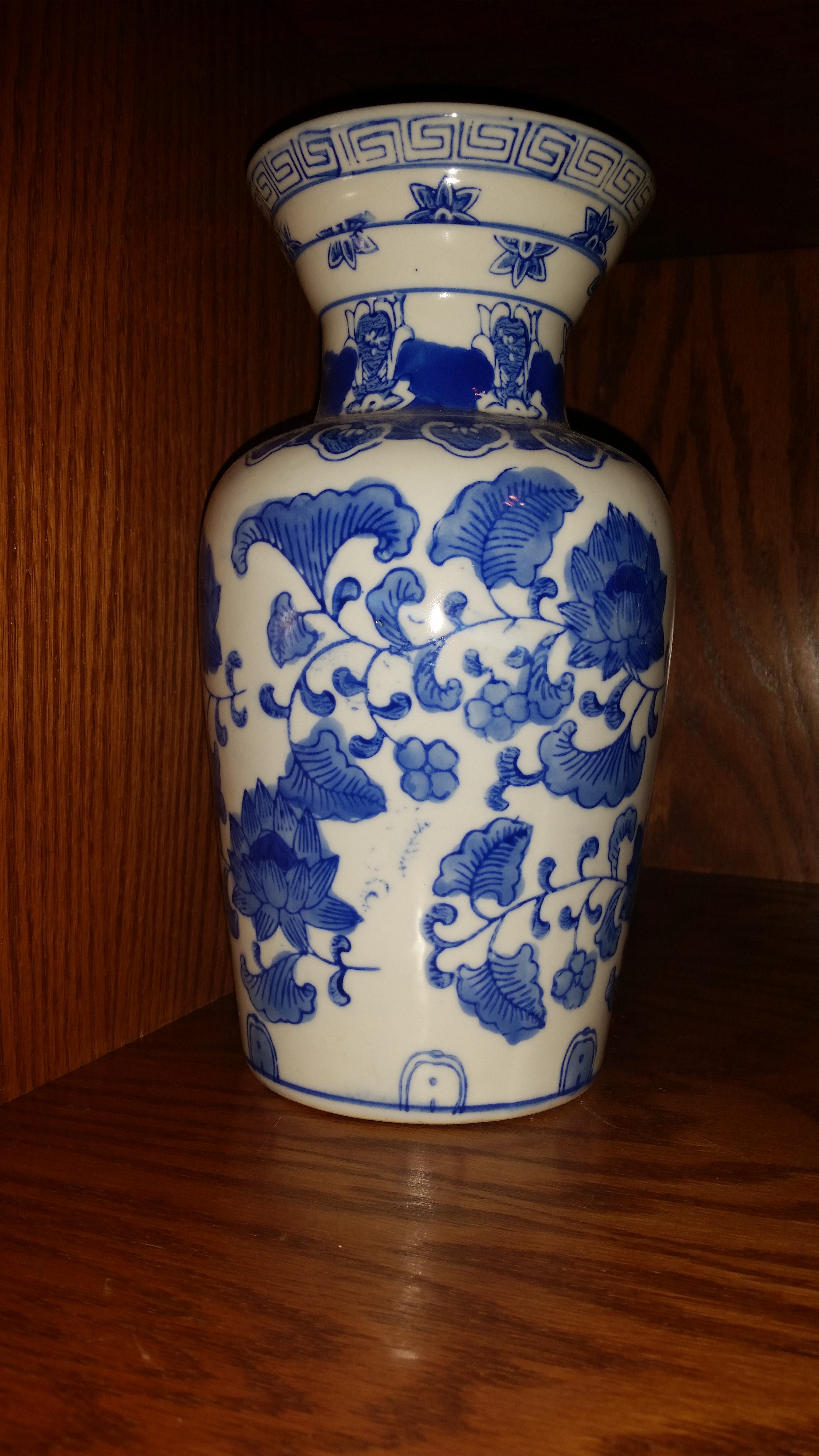 I'm cleaning house and trying to decide what is worth keeping, selling or tossing of the things I've accumulated through the years. This piece is a white and blue delft like vase. It is floral decorated. On the bottom it is marked with some Chinese symbols and also the words "MADE IN CHINA" in the same blue color as the flowers.