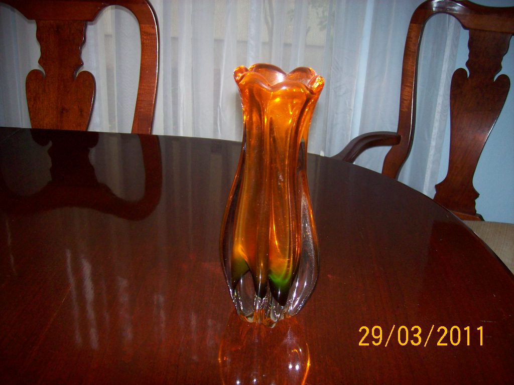 amber colored crysal vase nine and half inches in height. see photo. want to sell.