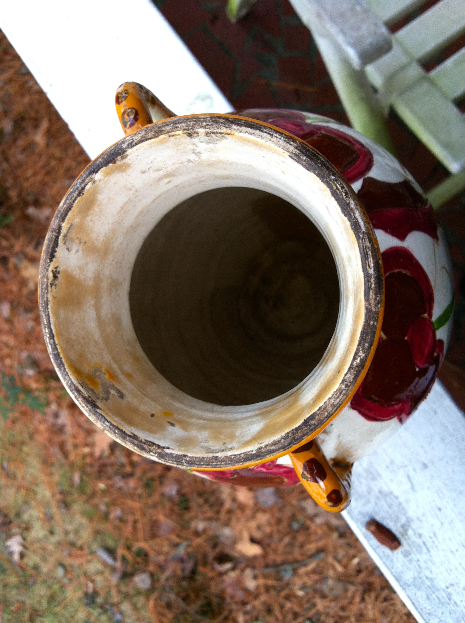 pottery vase with handles & floral decoration