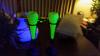 5.5 " H x 8" W vaseline glass with blue opalscent mouth gold gilt floral design with 2 gold gilt frog /thorn handles believe maker was Moser Glassworks. There is a piece broken off the top of back center . I included broken piece in the photos sadly it was damaged during shipping
