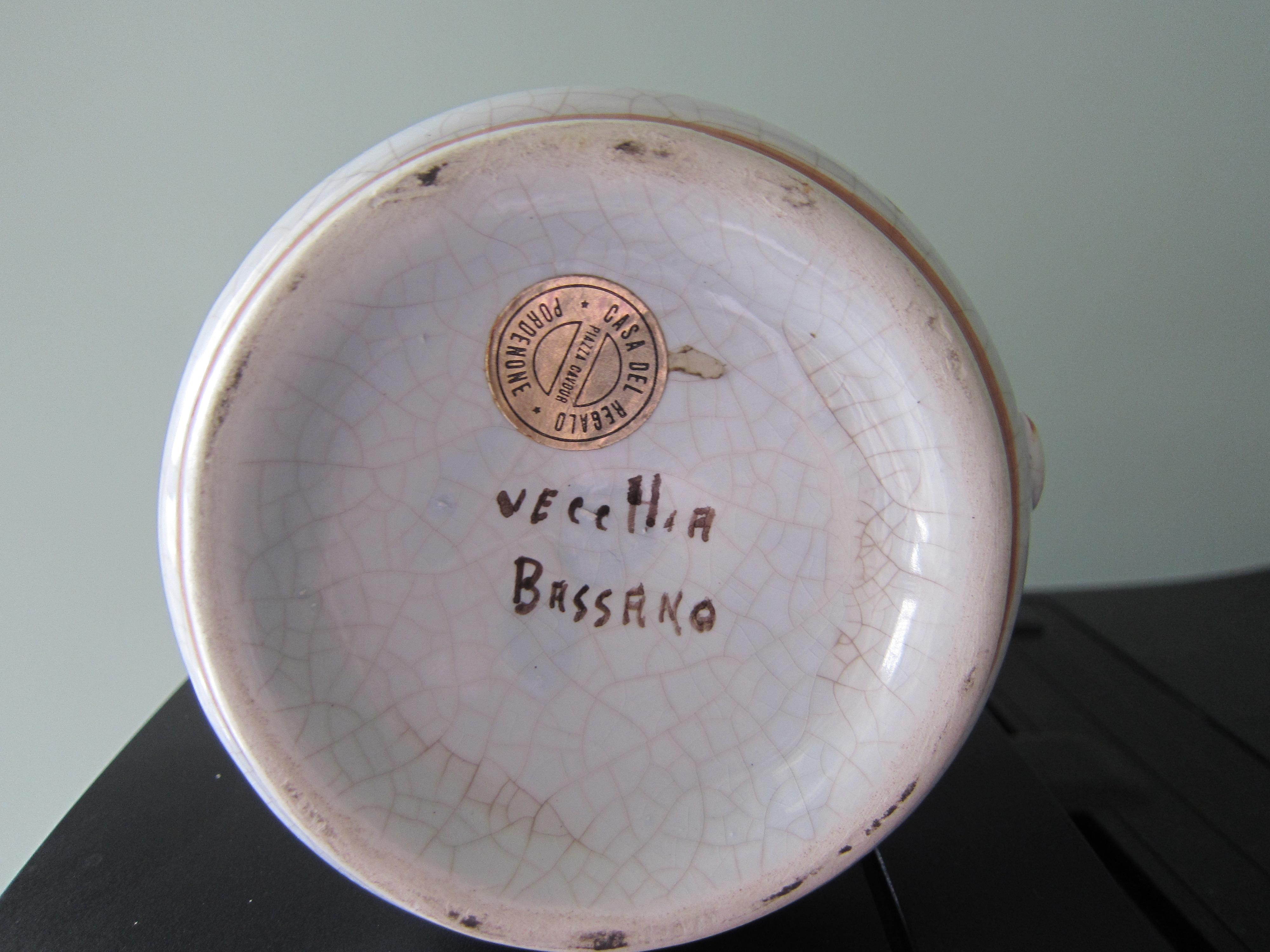 Vintage ceramic Vecchia Bassano floral hand painted signed ornament.