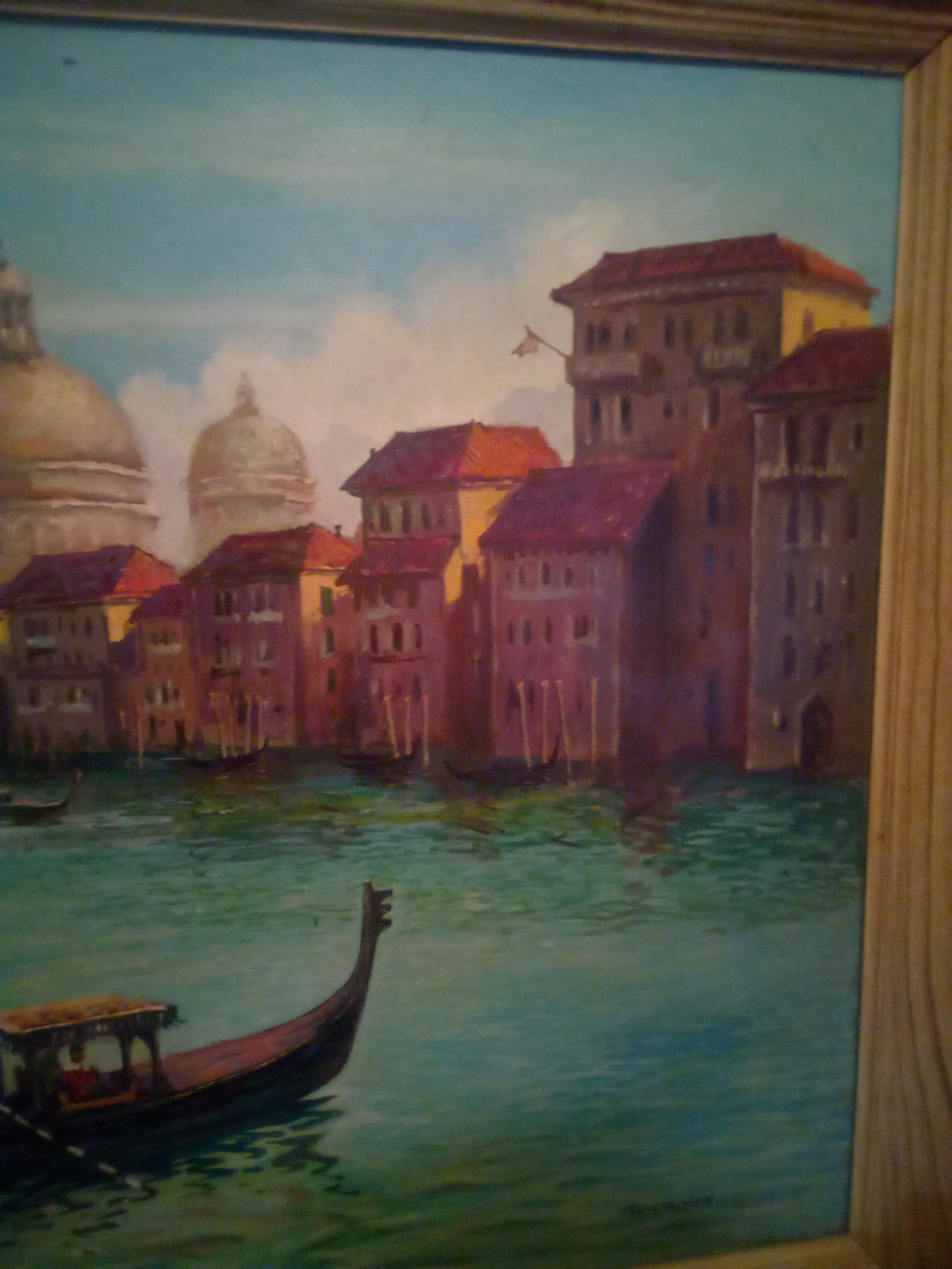 Streets of Venice Italy by Frank McWade ,framed on board.