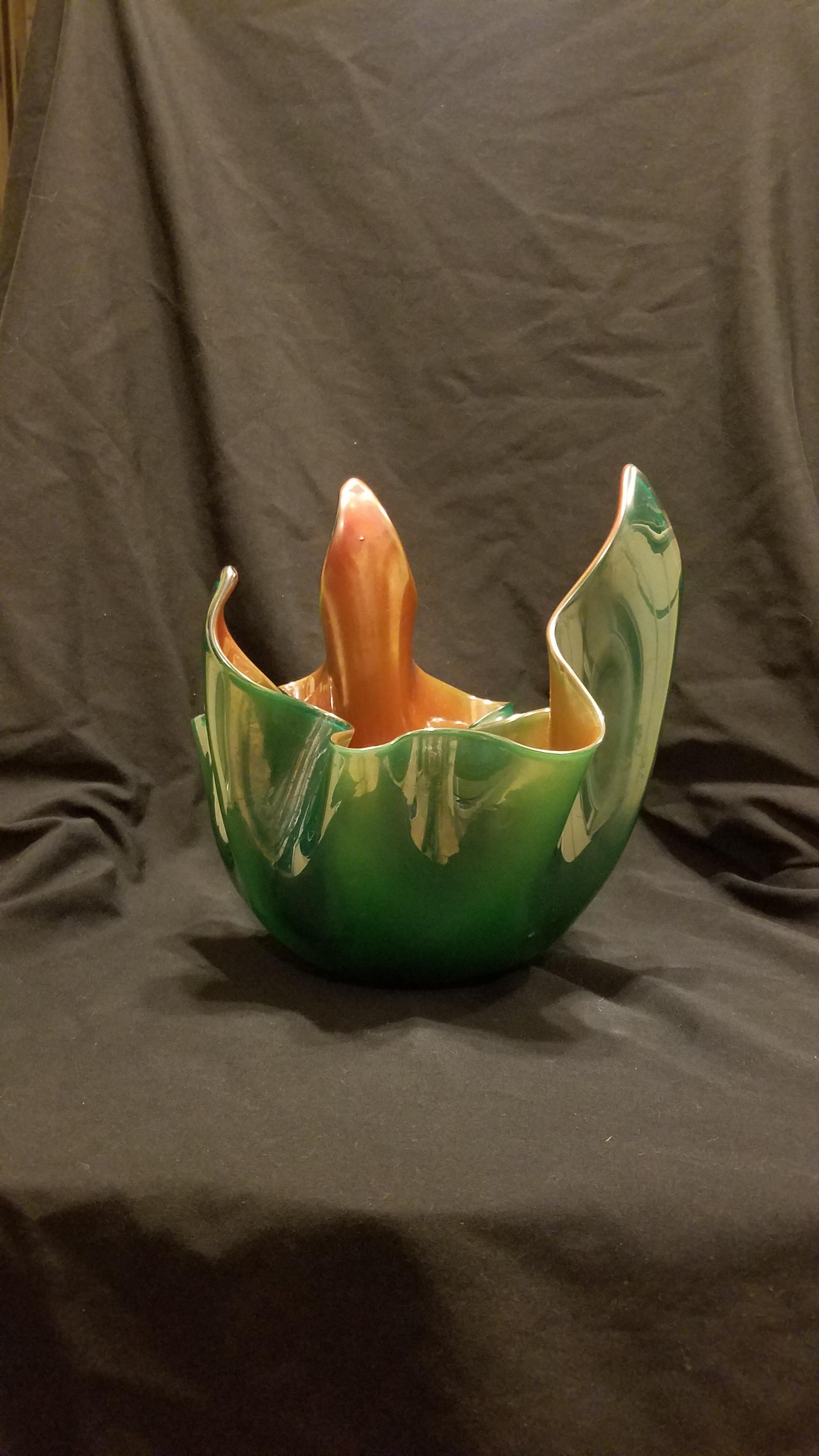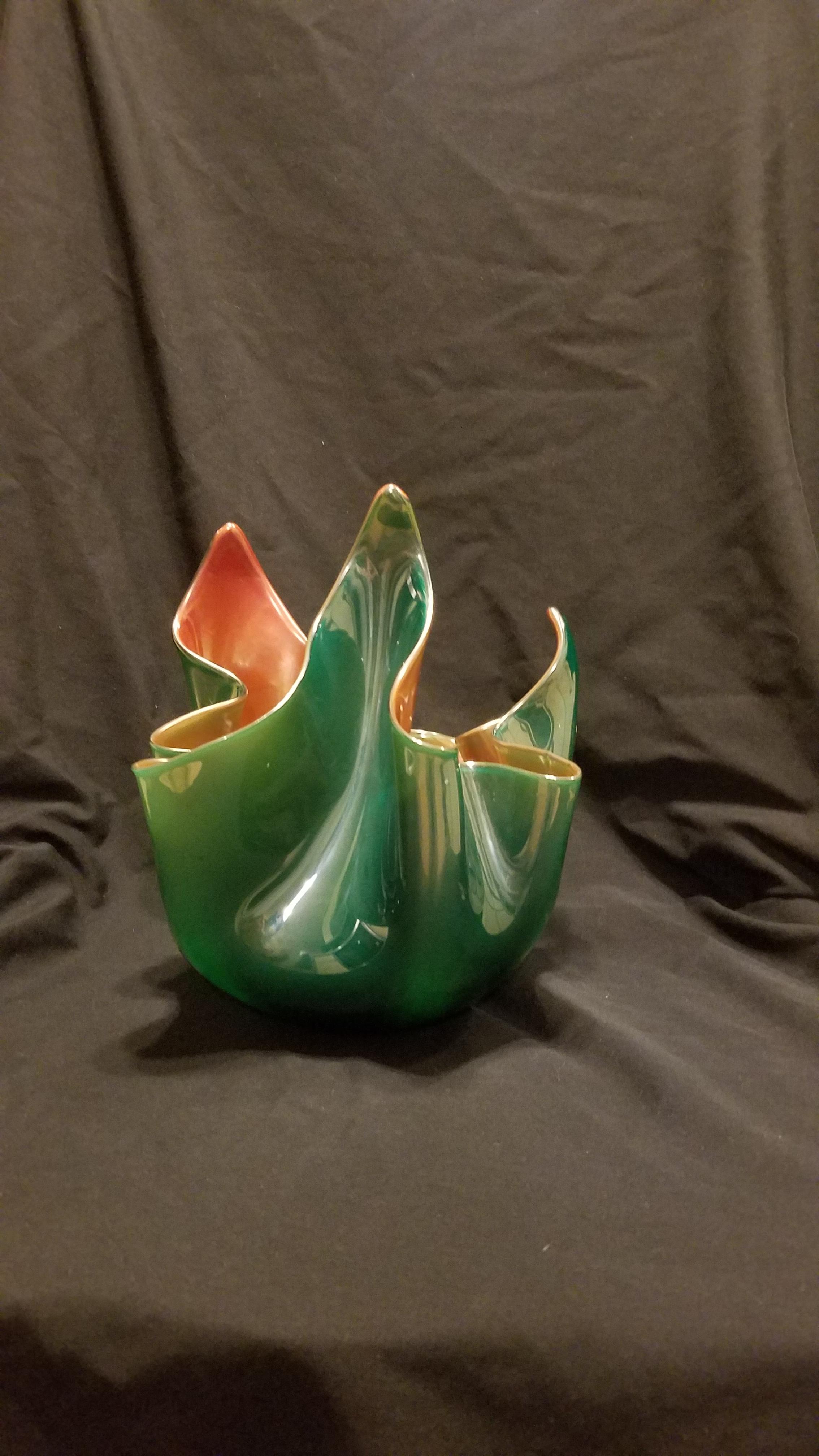 Mid century Venini Fazzoletto in green & red translucent incamiciato glass by Fulvio Bianconi (signed)