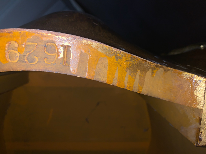 Date Period Likely Late 1800's - early 1900's. Louis XV style we think. 1629 stamped on the bottom, may be a serial number. We don't know.