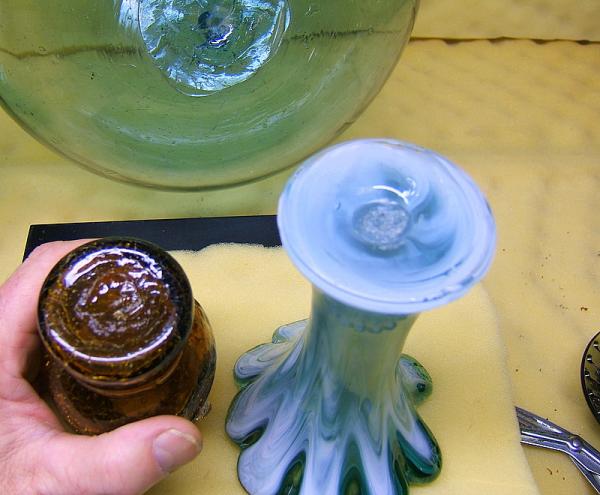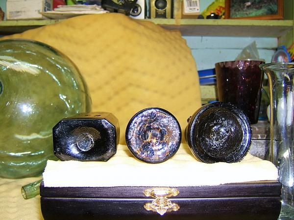 was out picking mushrooms when i found old cabin and dumpsite and it wasn't long before i fell through into privy.it was dry and full off bottles with many more scattered about the swamp.i know nothing about bottles and was throwing them out when a friend told me about your website.are they any good? what do i look for that's worth carrying back down the mountain,pontill mark? it seems the deeper i dig the older the bottles get. thanks for your time p.s. i have more pics of old bottles and could send invite link to any email address[link is from Picasa]