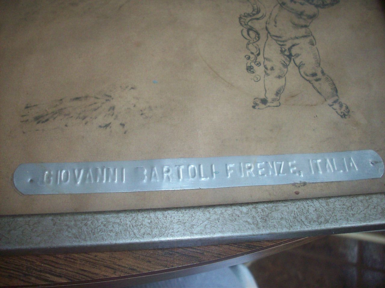 I have this very old drawing that was picked up at a yard sale many years ago by my father. I know nothing about it and researching it is hard to match any info to it. The only marking on it is the metal plate o n the front - GIOVANNI BARTOLI - FIRENZE, ITALY .