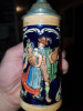 the steins aare made of pewter and pottery, they are from cech, and they were found by my dad,about 76 yrs ago at that time the ge of the steins were not known,one stein is in mint condition, the othere stein is in good condition,