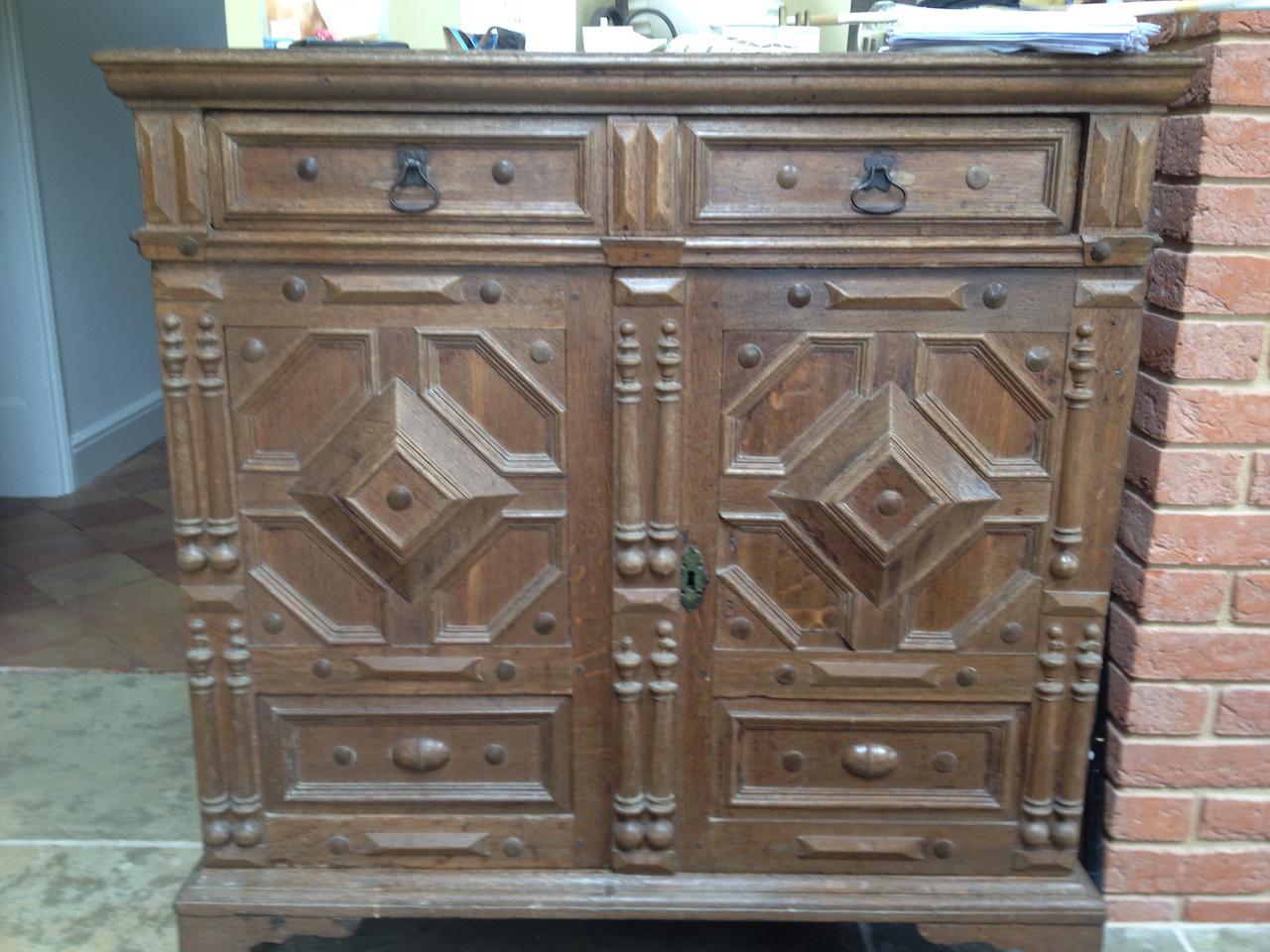 All detail present and woodwork in excellent condition and patina. A little old woodworm inside and on one corner outside. Believed to be English, Carolean era.