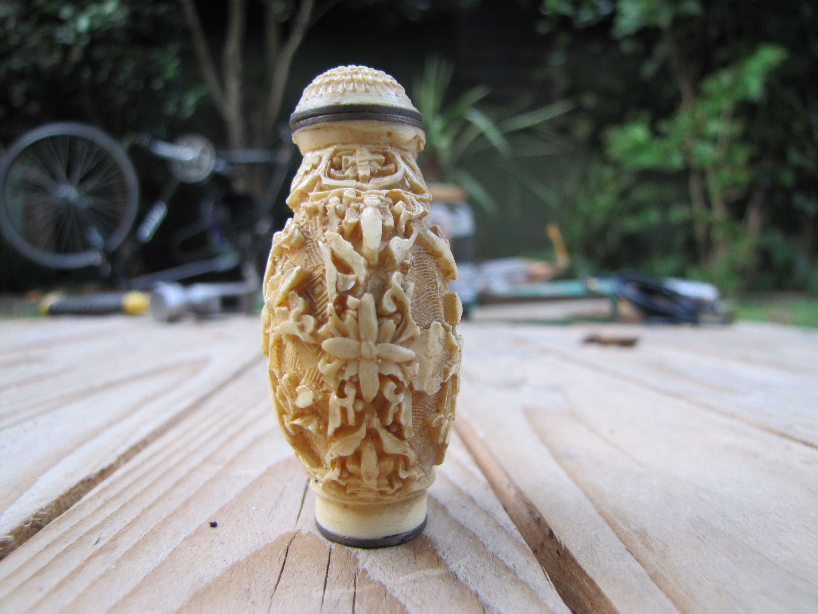 It appears to be a small perfum container of some kind. I have uploaded pictues of all angles for identification purposes.