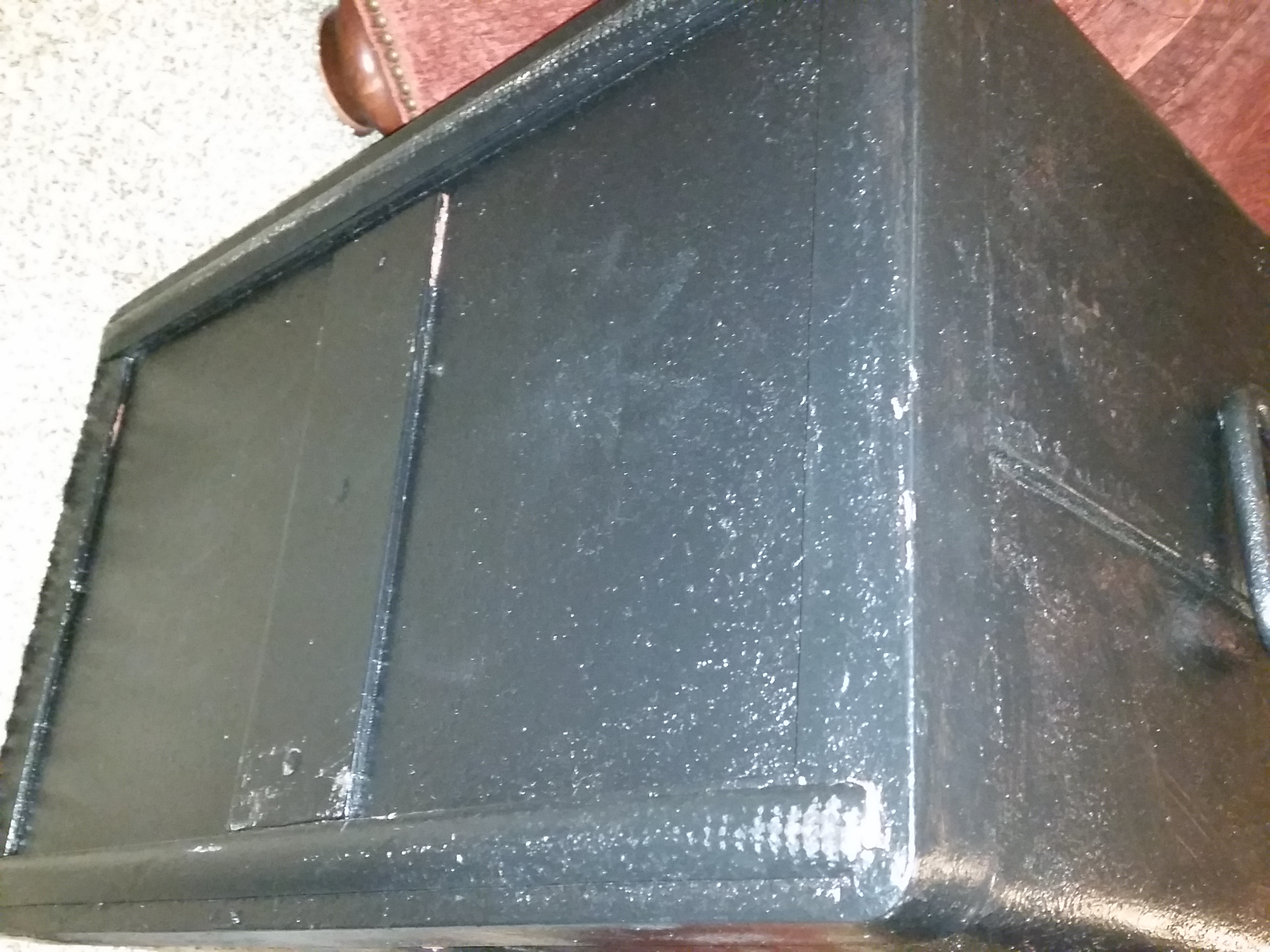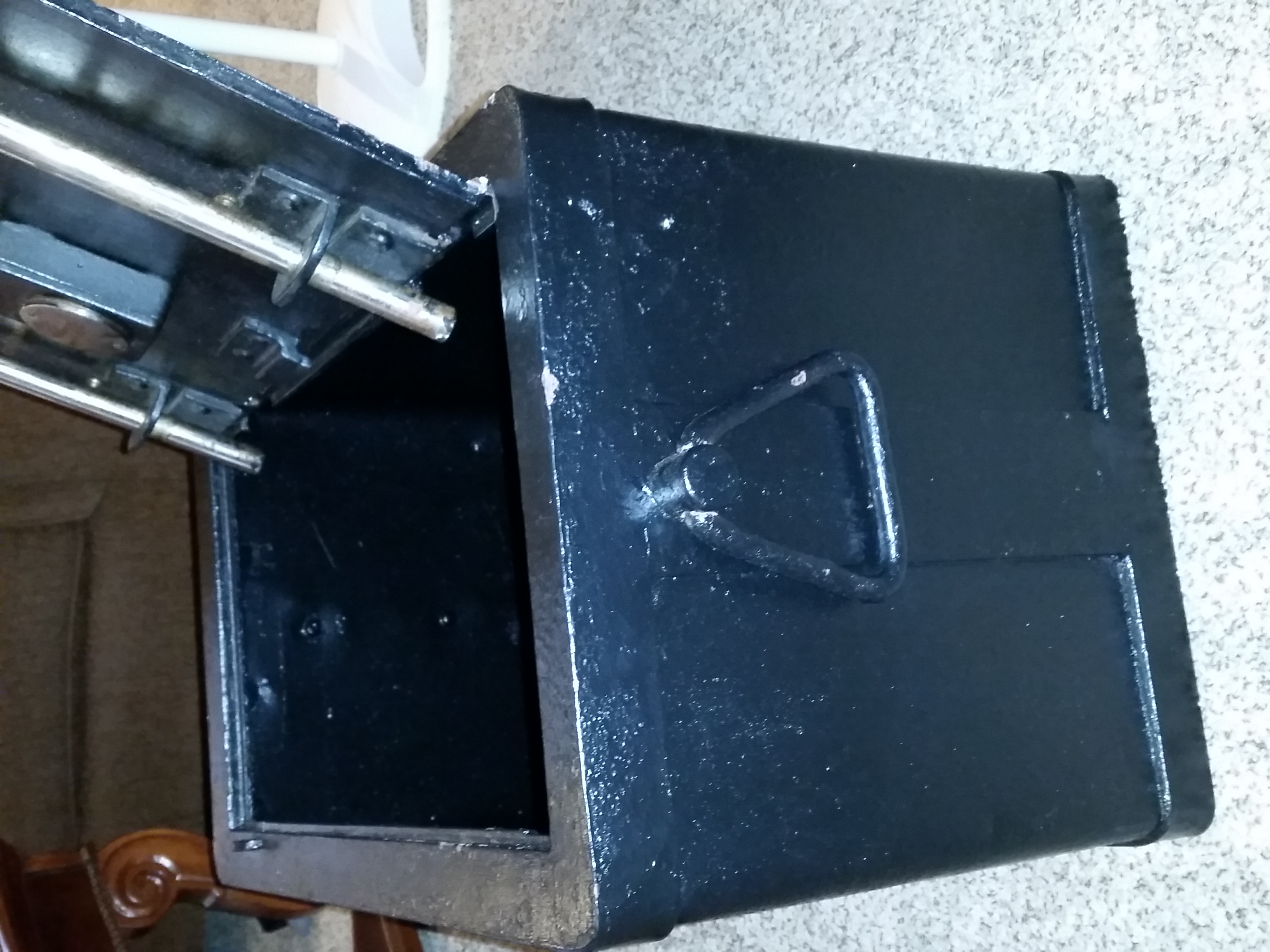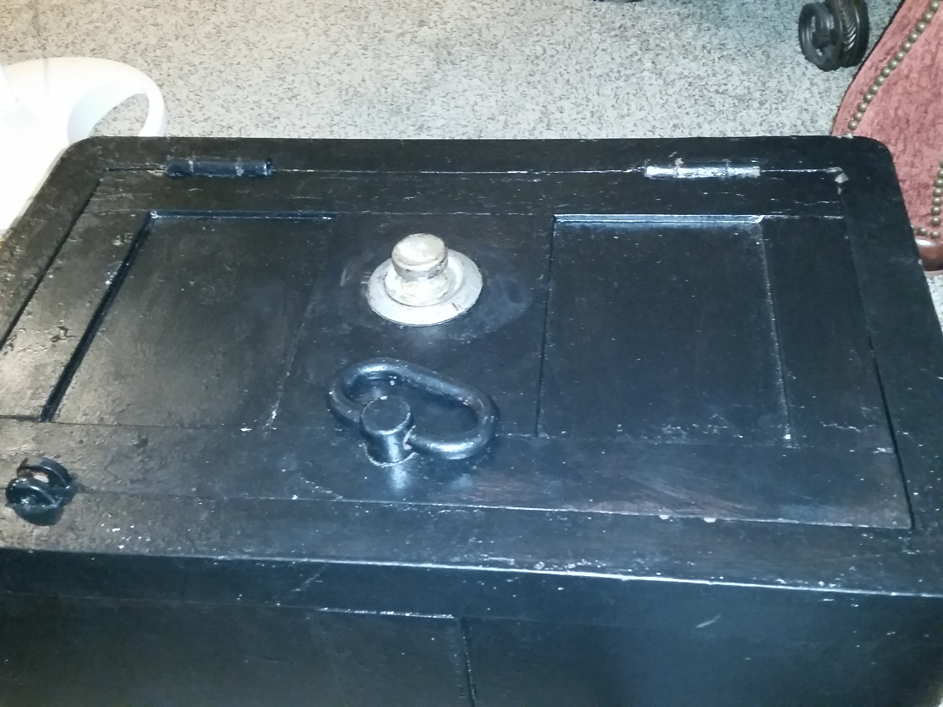 Hi. Picked this up for 60 bucks today with a working combination. Previous owner repainted it with a black rustoleum paint with the exception of under the lid with mechanism. Very small ding on front wall. Opens like it should with no rot and sold walls. Wondering how old this was and what the value of it would be now and if it's worth restoring at all. New to this site so not sure if any other info would be needed. Dimensions are 15x15x24. Thanks in advance.
