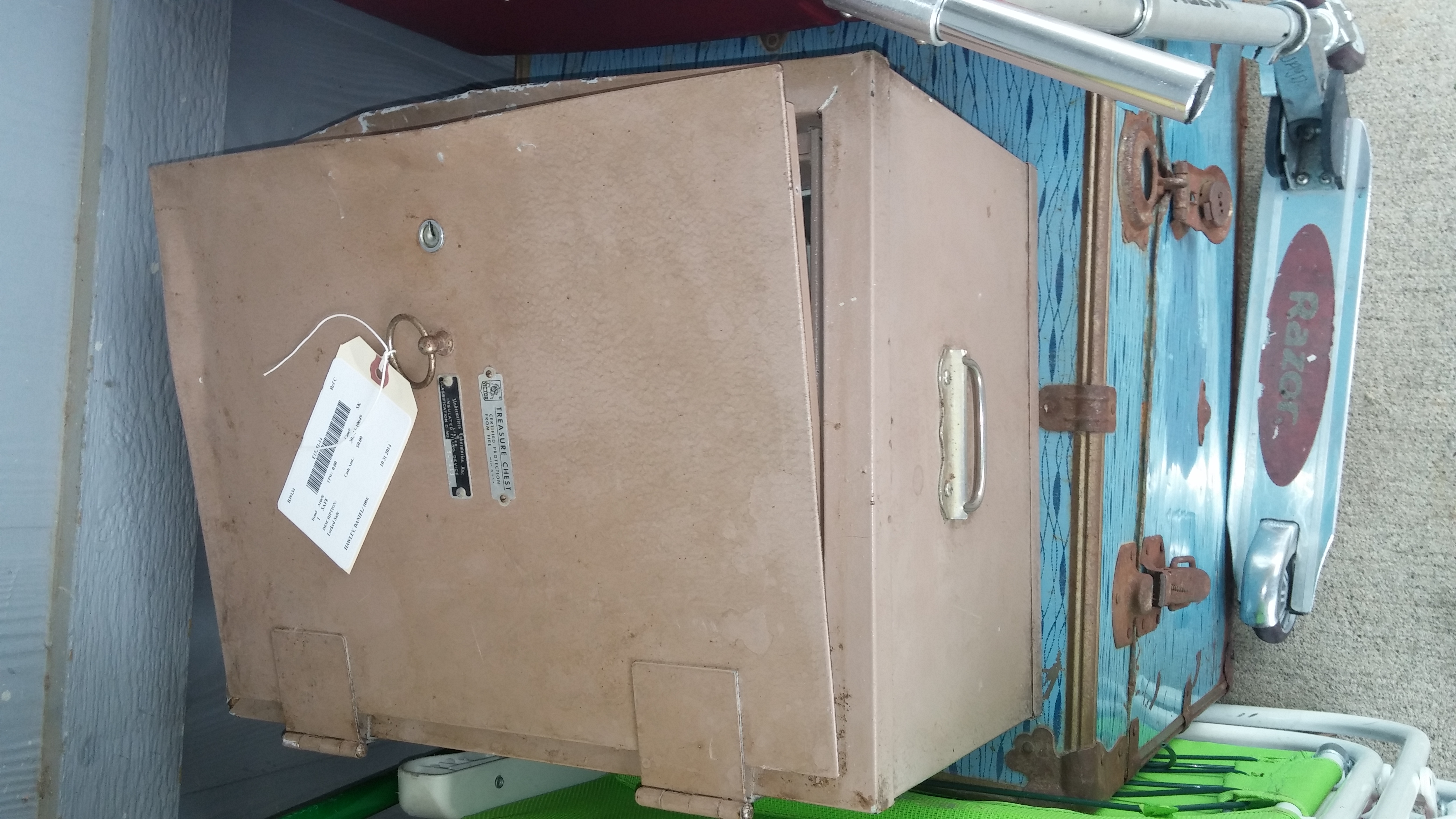Victor treasure chest safe, certified protection from fire, underwriters laboratories inc. Listed Insulated filing device. Classification D