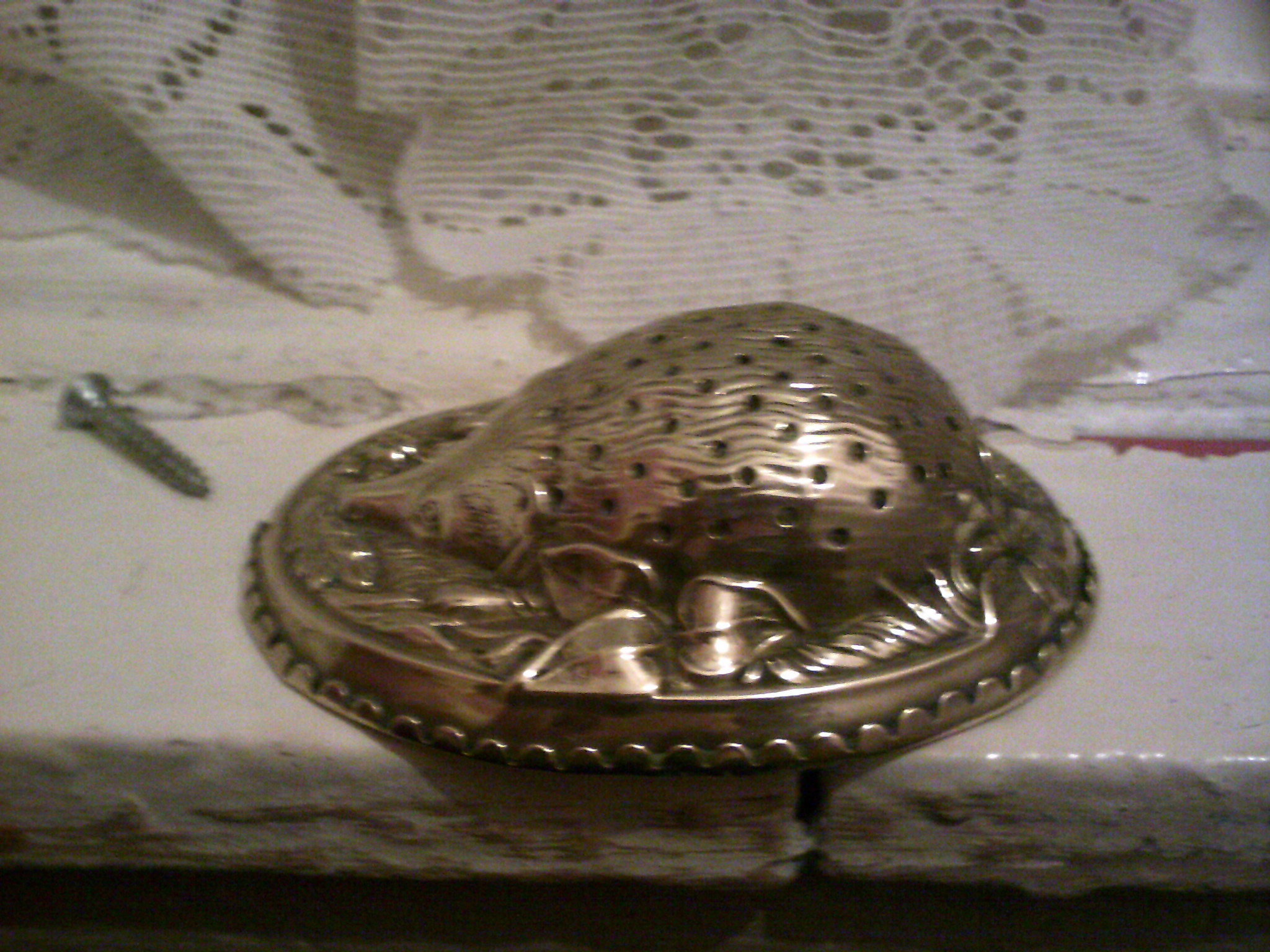 1872 victorian pin poppet, brass hedgehog surrounded by foilage
