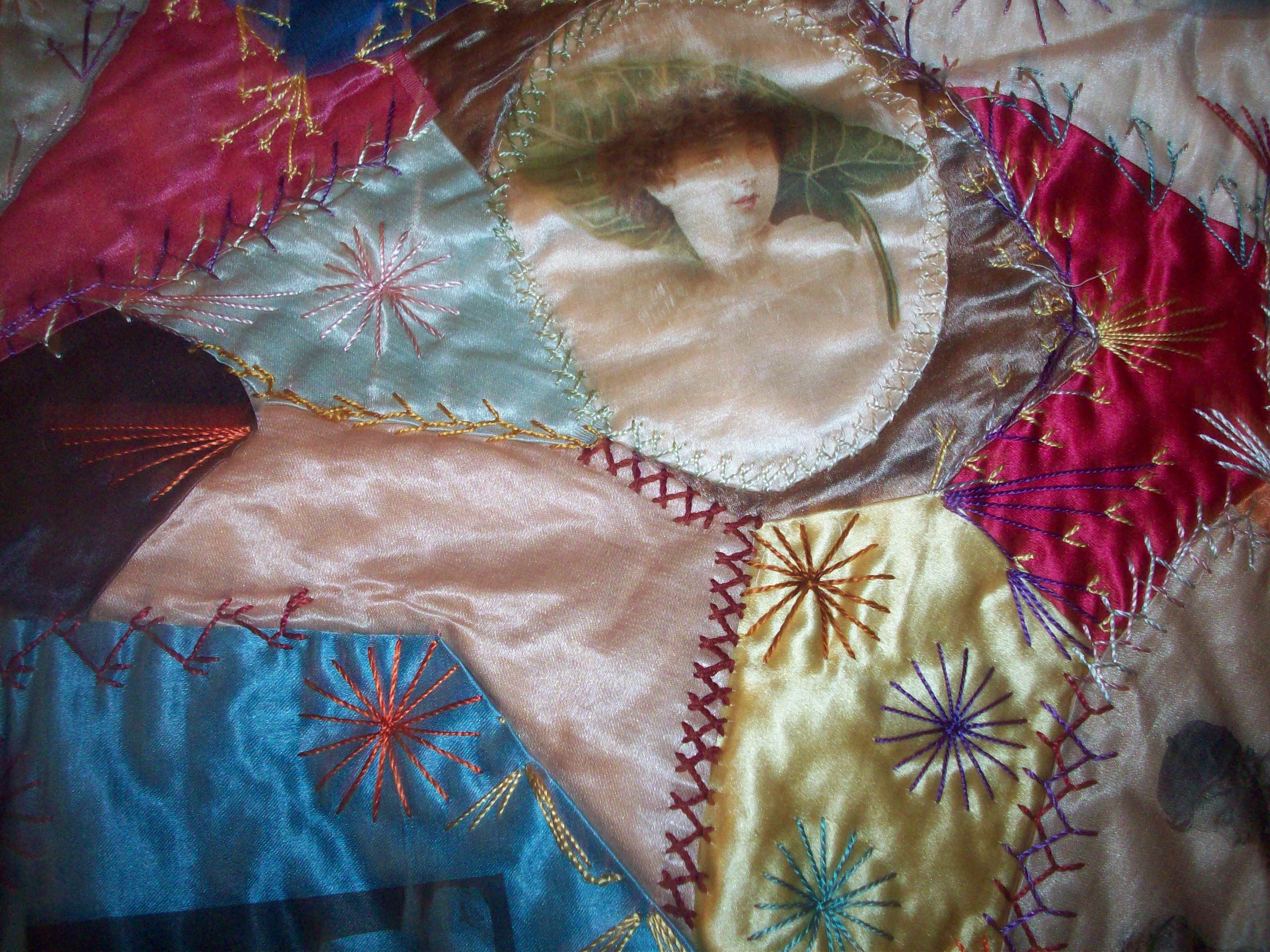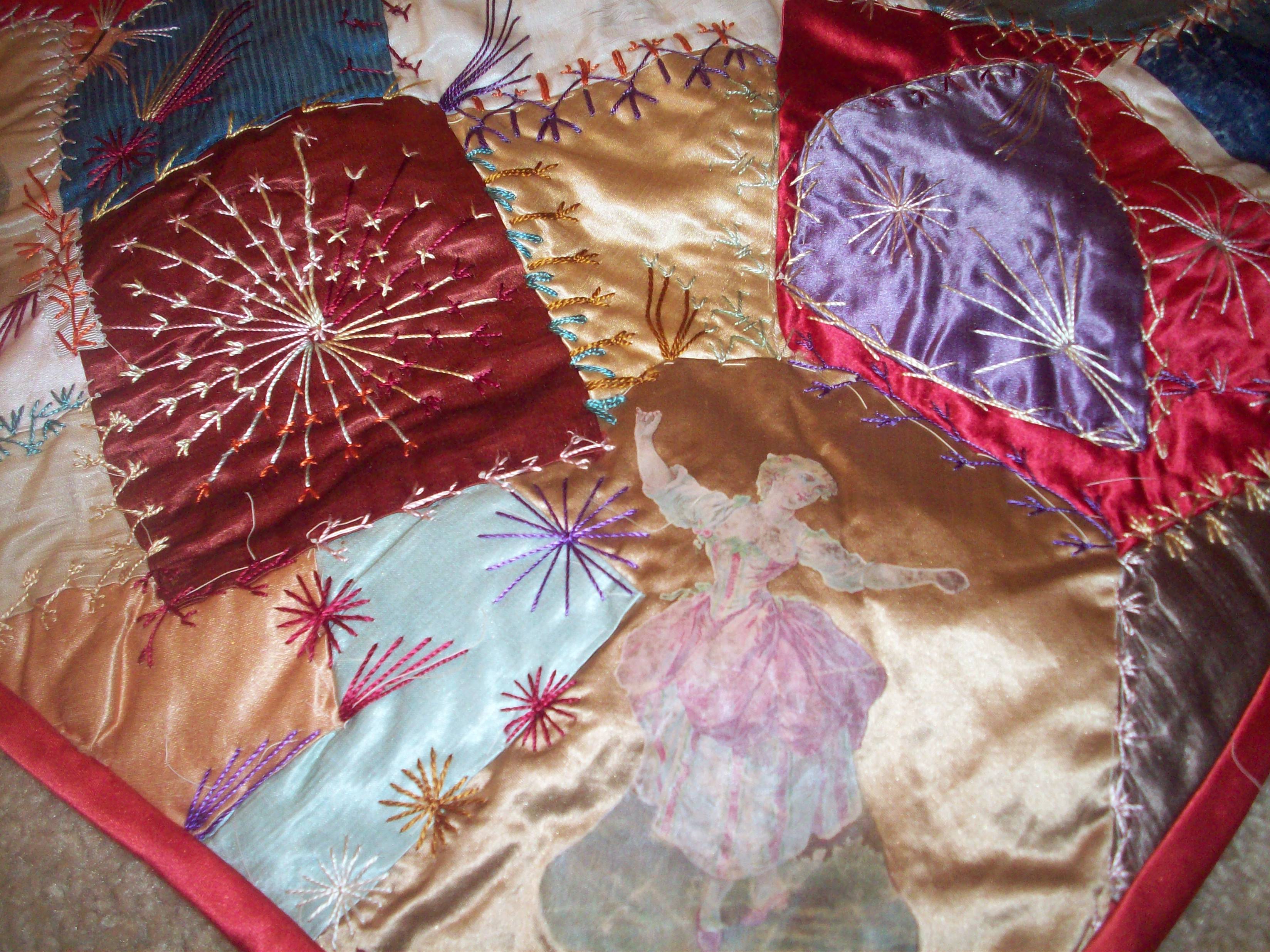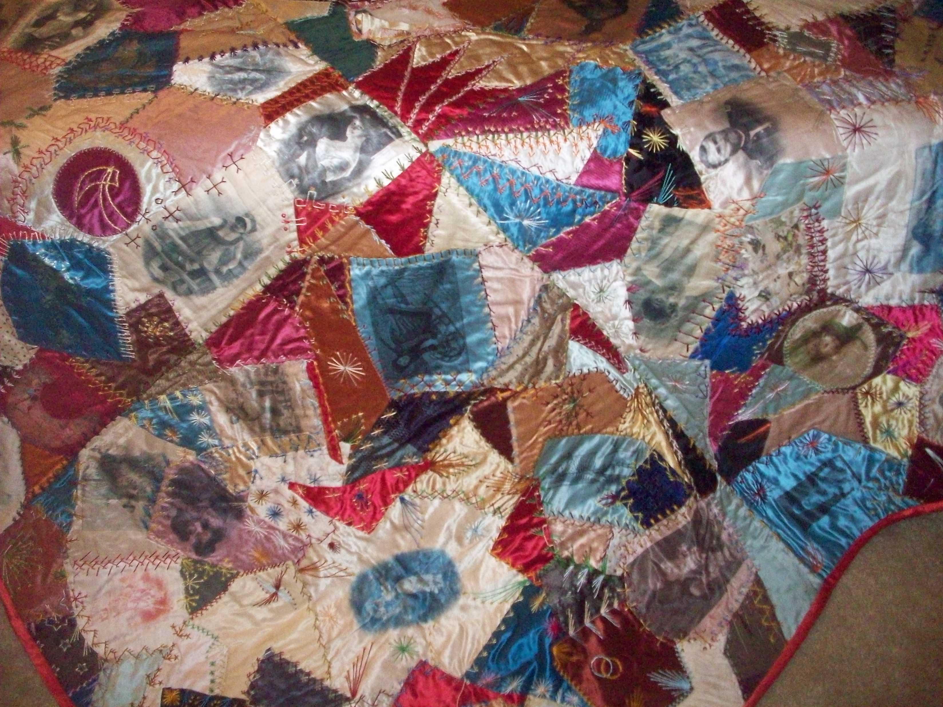 My mother has a Victorian crazy quilt she purchased at an estate sale in the 1950's. My mother is 95 years old and the estate sale was being conducted for a lady in her 80's. The quilt is made from the silk lining of hats and is all silk. .