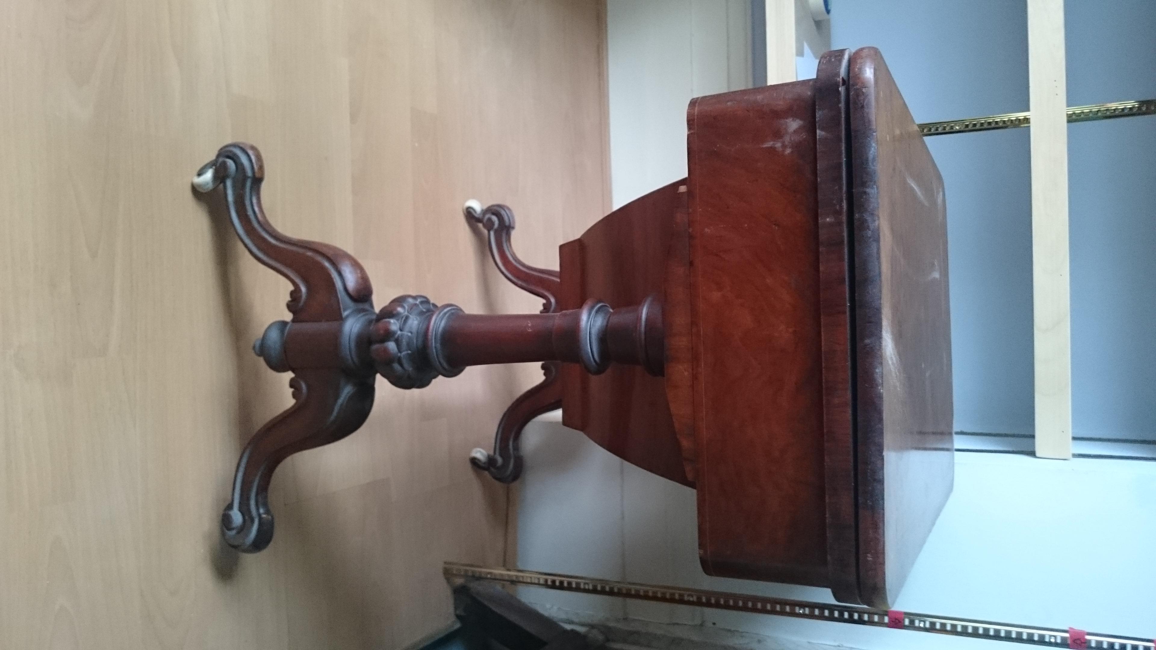 They unfortunately lost the key a long time ago, but we are not giving up on the search! As you can see from the pictures the top swivels around and then opens up as a card table.