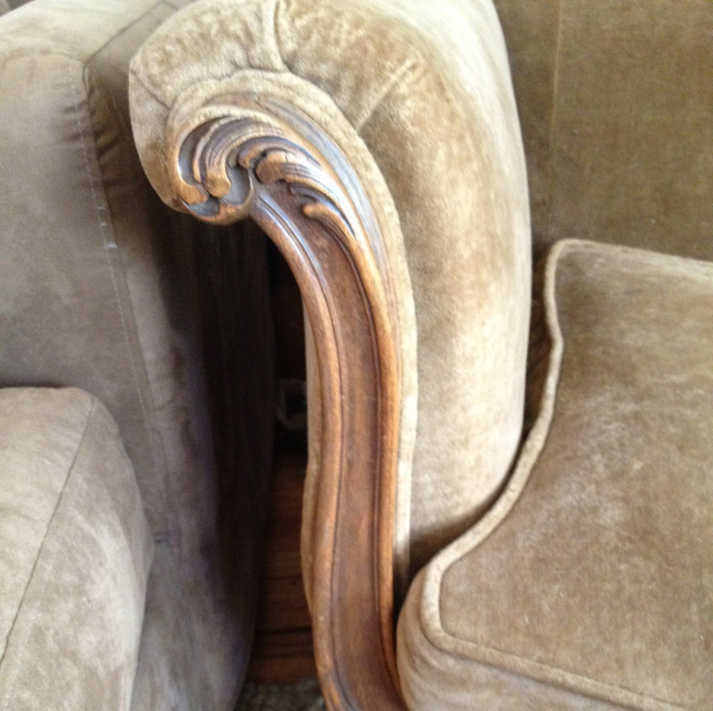 Cherrywood, been refinished, otherwise in excellent condition. Original springs and frame work. solid
